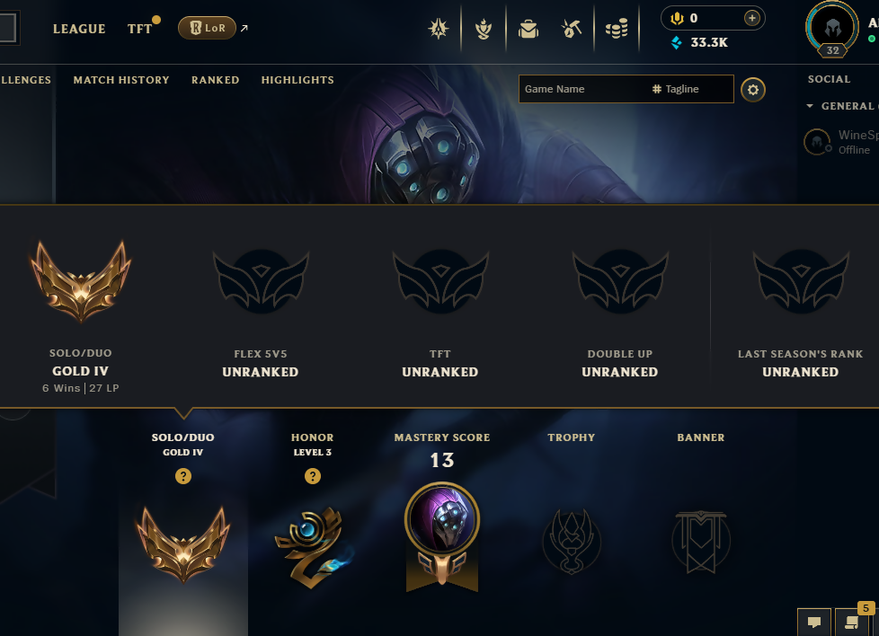 ⚡ 【 NA 】 ⸱ Gold IV 76.5% WR ⚡ | Hand Boosted ✌️ | Unverified ✅ | 33366 BE 💵