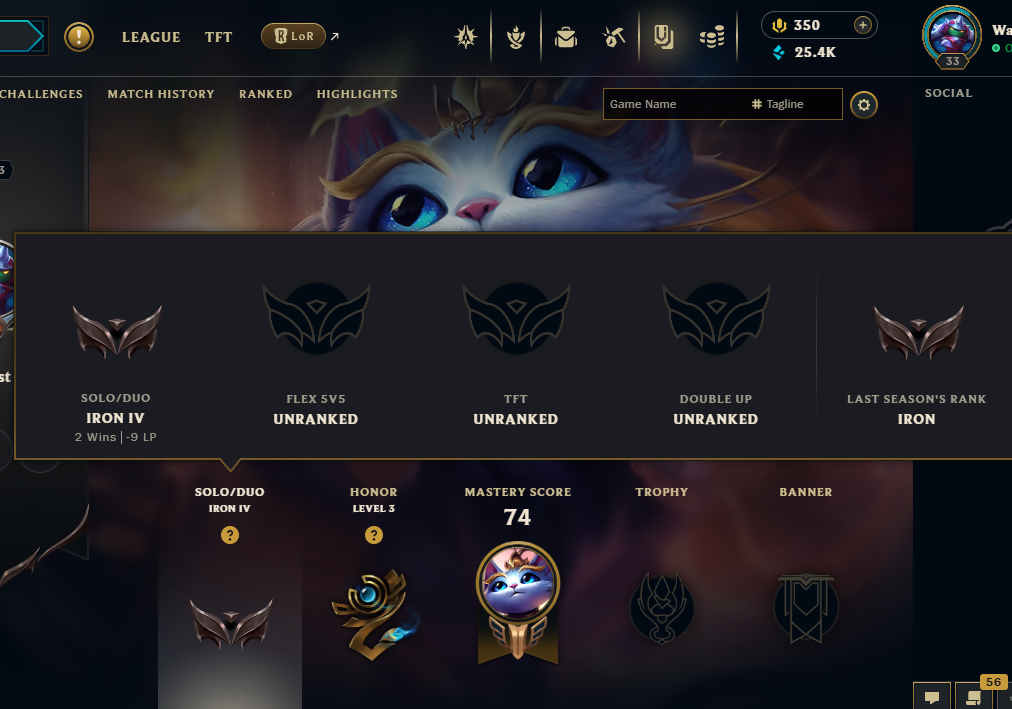 ⚡ 【 OCE 】 ⸱ Iron IV 4.5% WR +43Games ⚡ | Hand - ( leveled + De-ranked ✌️ ) | Unverified ✅ | 25425 BE 💵 | 350 RP 💰 | Untouched-Loot
