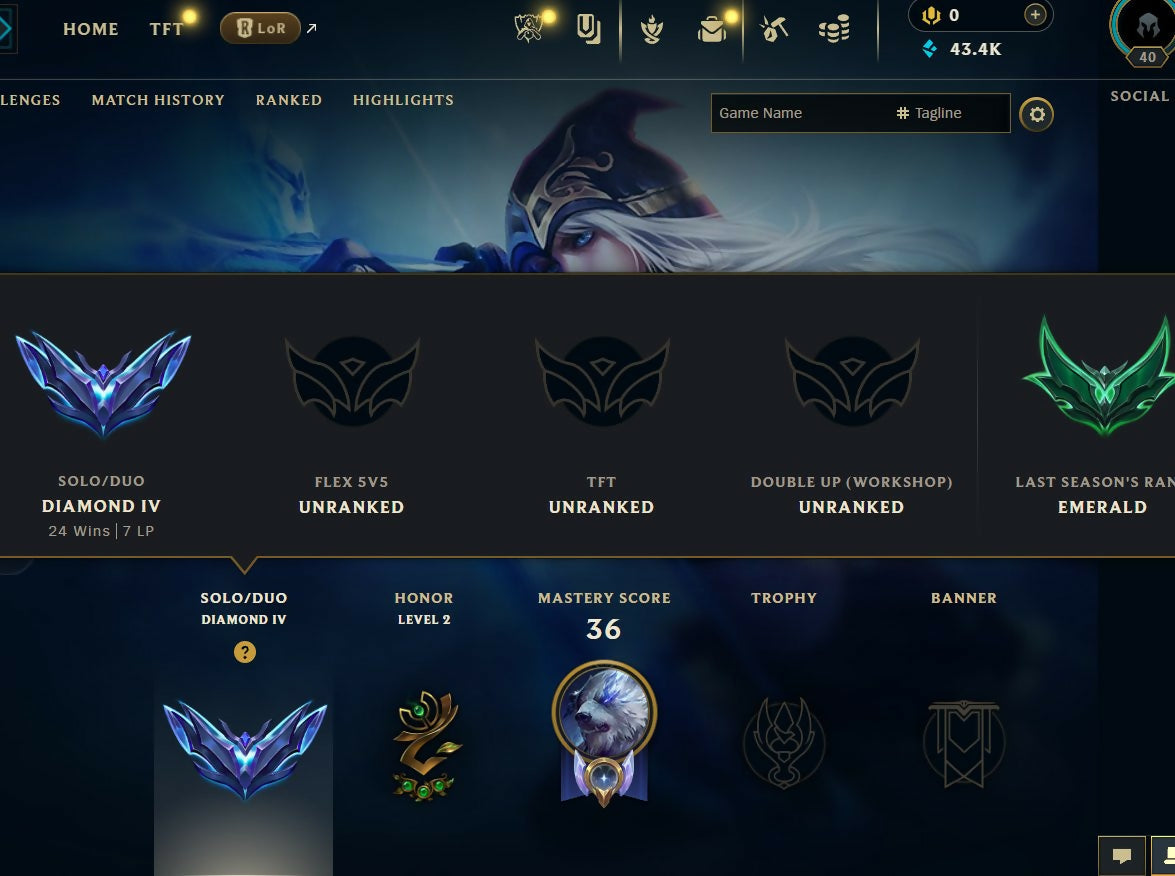 ⭐️️(25%) Discount⭐️️EUNE⭐️S14 Split 3 ⭐️Diamond 4⭐️ 56%winrate⭐️2 Skins +22 champs+43k⭐️warranty⭐️Instant delivery, Sale, level 40, champions 22, skins 2, Diamond