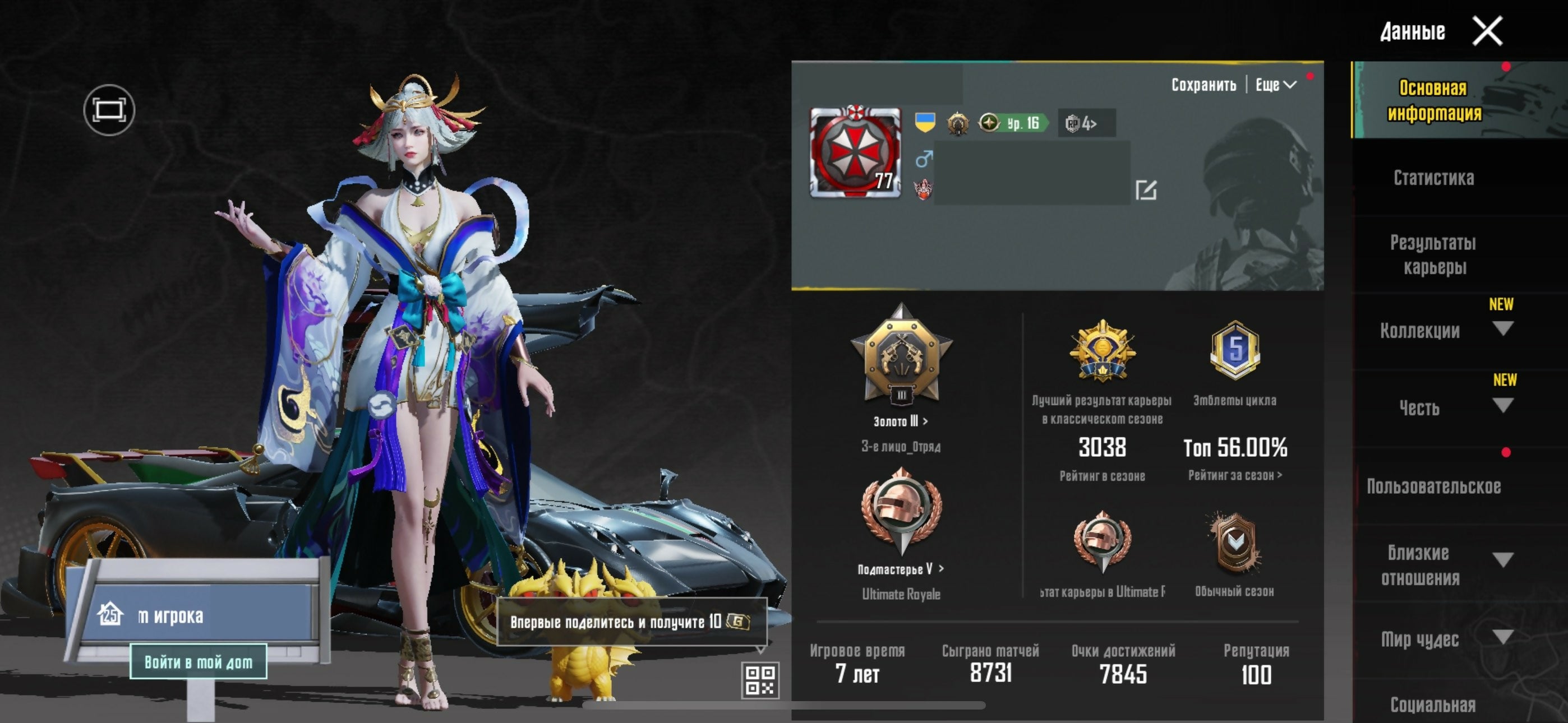 ⭐️Sell⭐️ Personal account⭐️ Old account⭐️ Basis⭐️Guarantee⭐️, Sale, 77 level, Rank: Ace, 100+ Mythic skins, 20+ upgradeable weapons, 10+ Kill chats, 1-5 Sport cars