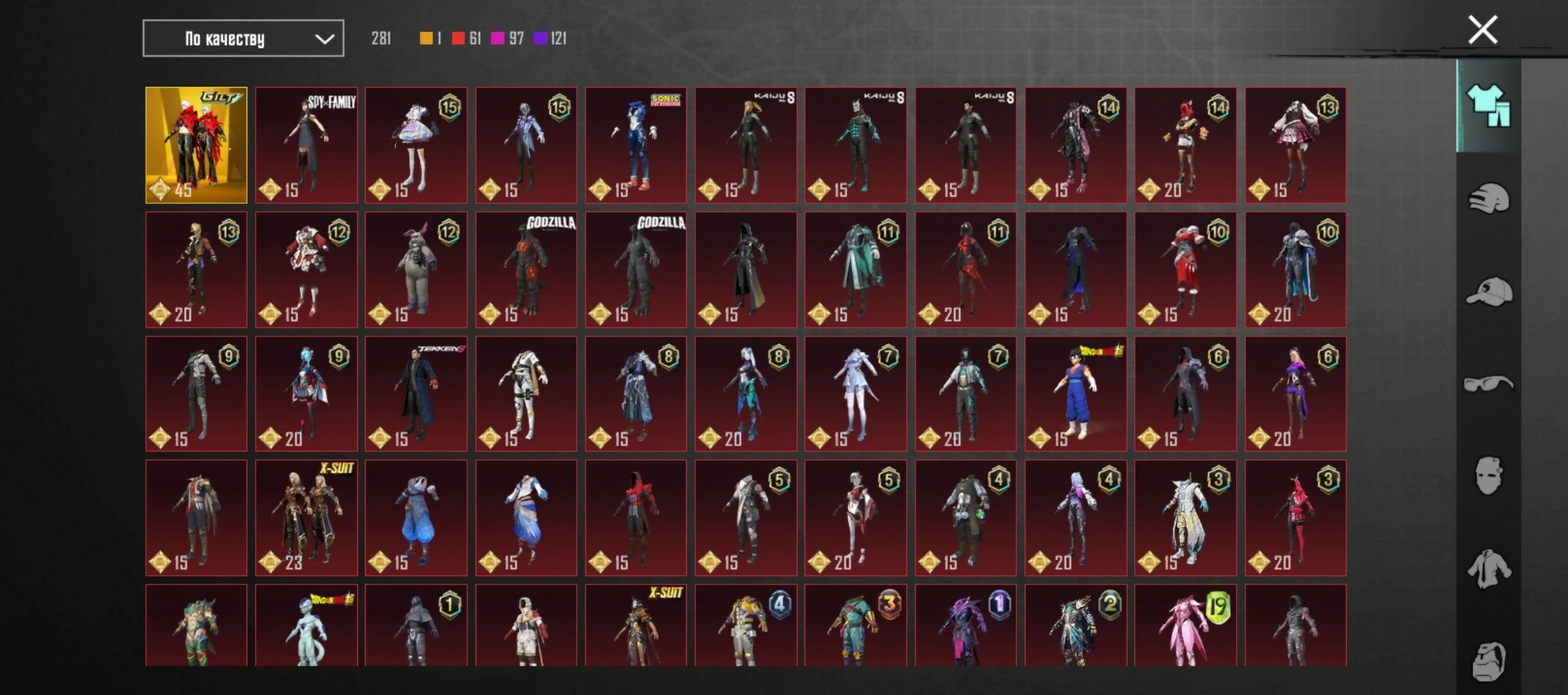 FAT ACCOUNT WITH X-SUIT ""RAVEN"" EVERYTHING ELSE IS IN THE DESCRIPTION, Sale, 81 level, Rank: Conqueror, 30+ Mythic skins, 30+ upgradeable weapons, 10+ Kill chats, No Sport cars