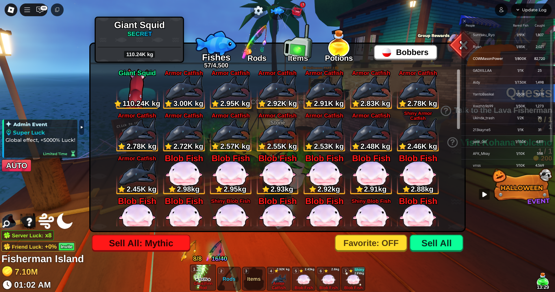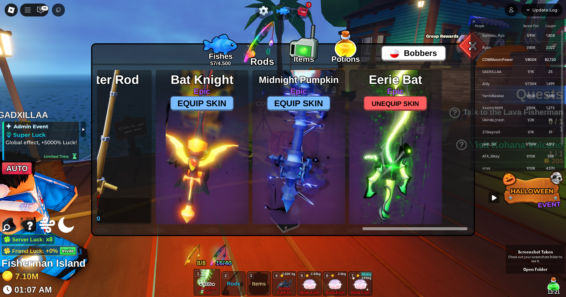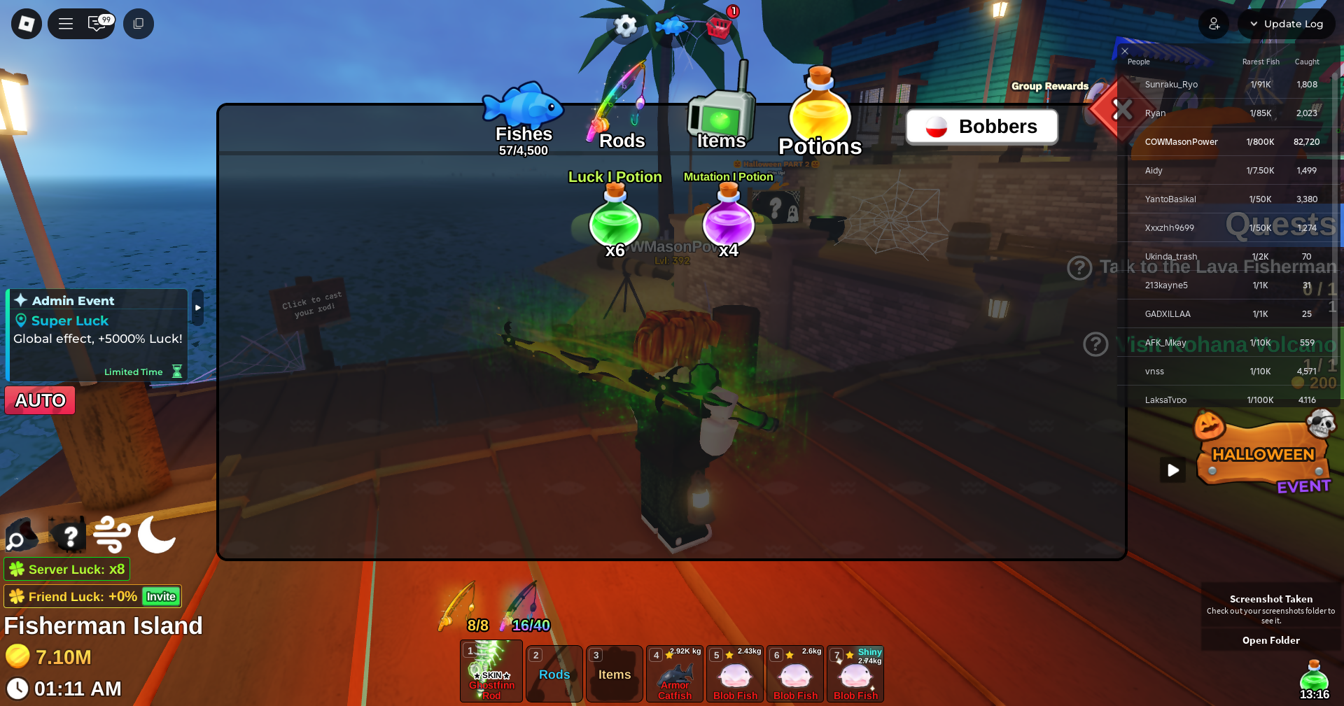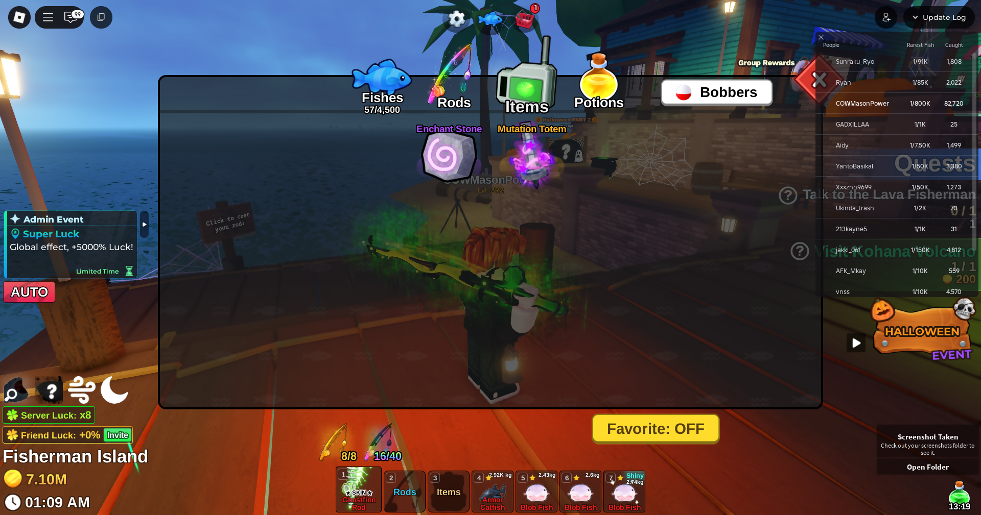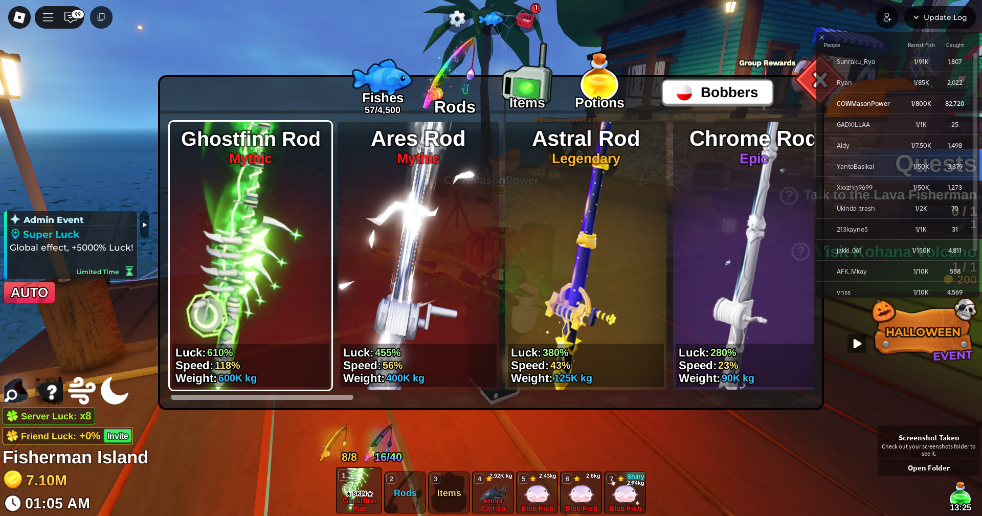 Fish it Account ❄️ 2 mythic rod ❄️ corrupt bait bait ❄️ secret + mythic Fish ❄️ 1/800k catch ❄️ 7.1 million Coin ❄️ Skin Rods ❄️ Level 392
