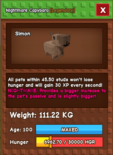✨Goldy Nightmare Capybara, 111.22KG + 16 SX Sheckles✨ |⛺ Grow a Garden |⚡ Instant Delivery