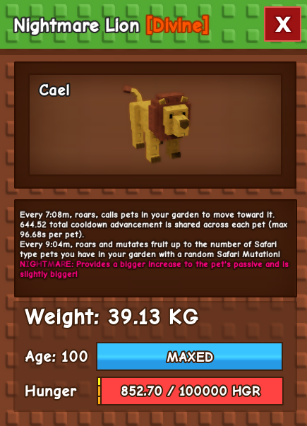 Nightmare Lion 39kg+AGE:100⚡15,000,000 Quadrillion (15 SX) Sheckles Gift ⚡Fast delivery | Grow a Garden