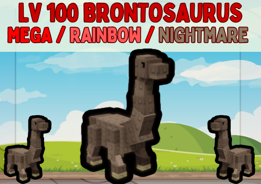 Mega / Rainbow / Nightmare Brontosaurus | ⚡ Maxed Level / Age 100 | Grow a Garden