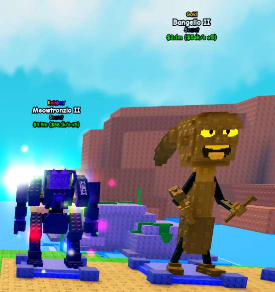Crush Rebirth 6 with this powerhouse duo built for balance, burst, and efficiency. Bangello drives consistent high-tier income and short-cycle farming power, while Meowtronzio enhances late-game scaling with strong multiplier synergy and stable $/s growth. Together, they make the perfect combo for advancing through the demanding Rebirth 6 phase while maximizing returns from every spawn and boost.