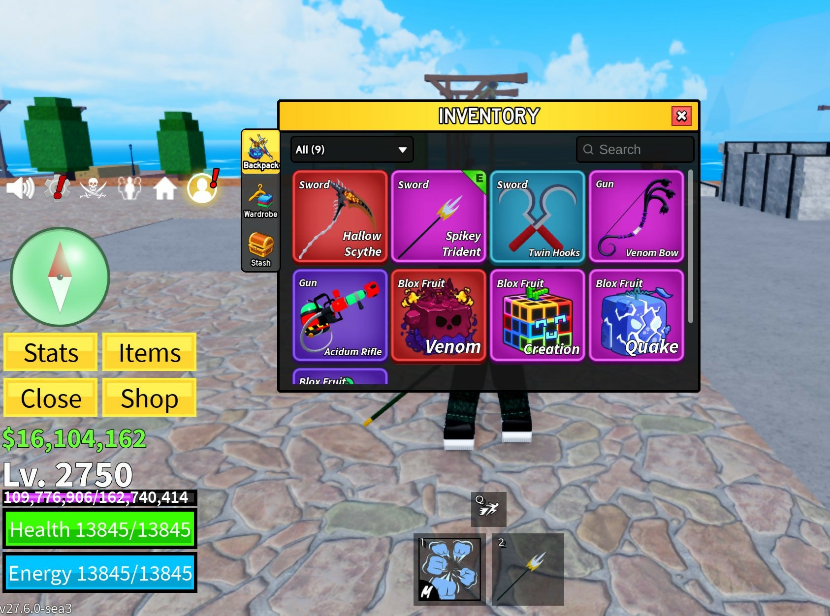 Blox Fruits | Max LVL 2750 | 16M Beli | Godhuman | Hallow scythe | Venom + Creation + Quake fruit | 3x Stat Max