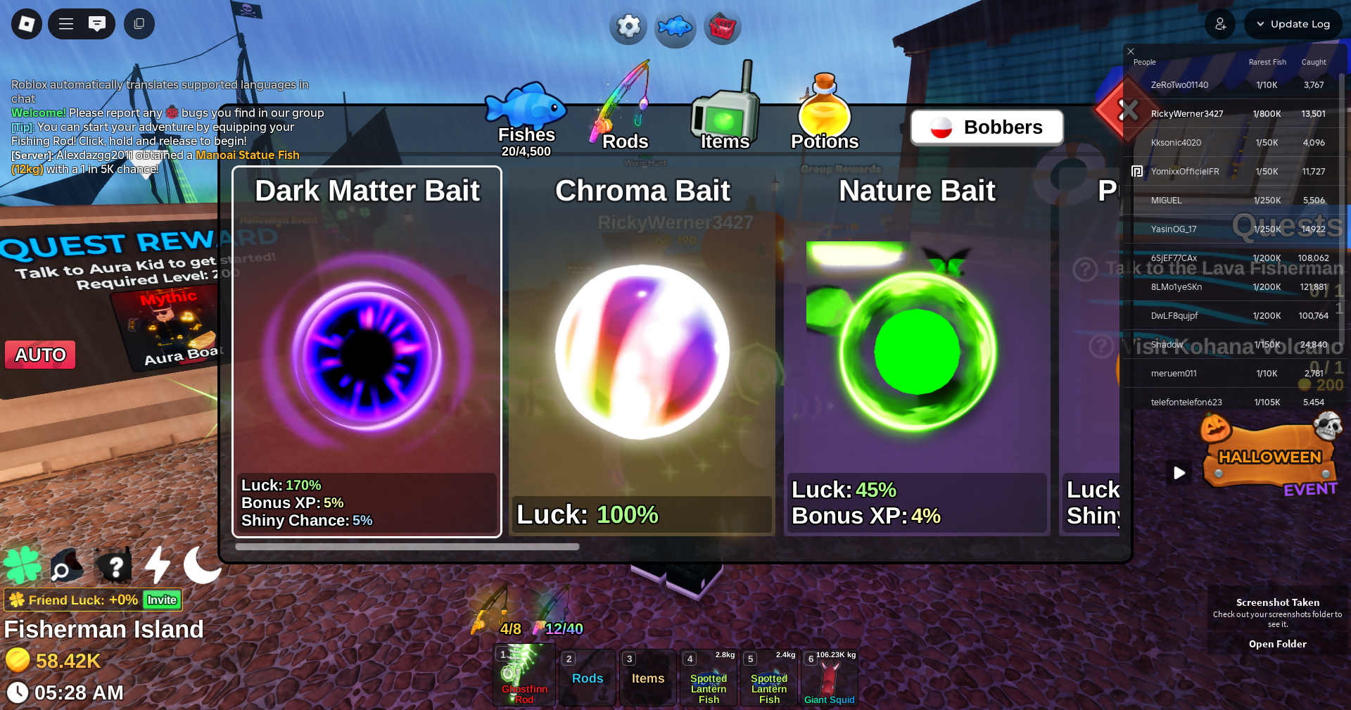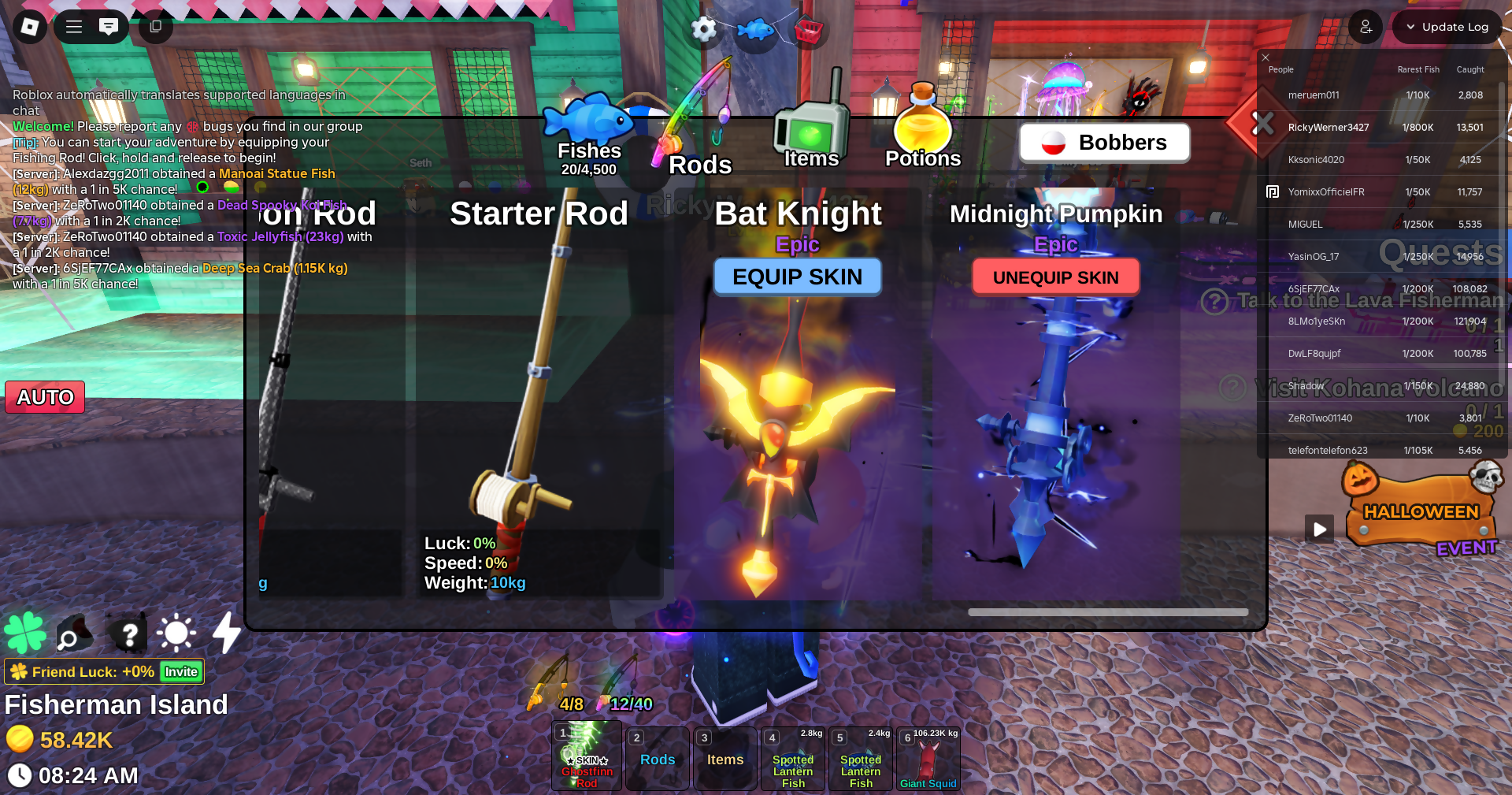 Fish it Acc ❄️ Ghostfinn Rod ❄️ Flourescent Rod ❄️ Random good Fish ❄️ 1/800k catch ❄️ 58k Coin ❄️ Skin Rods ❄️ Level 190