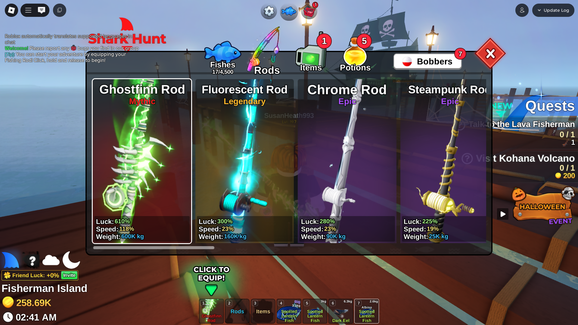 Fish it Acc Ghostfinn Rod❄️ Flourescent Rod ❄️ Random good Fish ❄️ 258k Coin ❄️ Skin Rods ❄️ Level 200