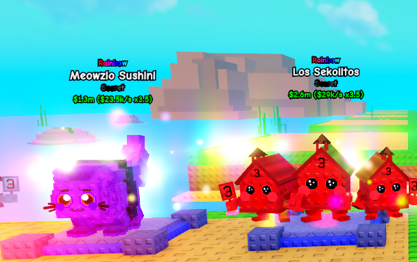 Dominate endgame progression with this Rebirth 6-ready duo. Los Sekolitos delivers dependable high-tier income generation, while Meowzio Sushini adds late-game scaling and consistency, making the pair ideal for clearing the steep Rebirth 6 requirements efficiently. This bundle targets players who want to sprint through the final rebirth tier and maximize permanent boosts for farming, bosses, and card progression.