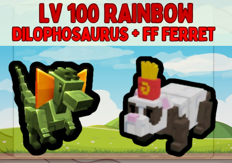 Title: Lv 100 Rainbow Dilophosaurus + Rainbow French Fry Ferret