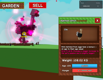 ❄️NIGHTMARE COLLOSAL OSTRICH 108+KG AEG100 ❄️Grow a Garden❄️