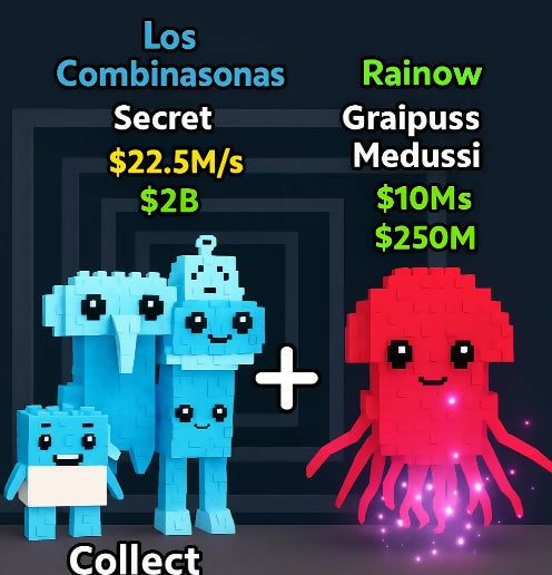 Los Combinasomas brings the brains and precision, while Rainow Medussi stuns with radiant power and 10M/s speed. Together, they crush the competition and fill your vault in seconds! 💼💥💎