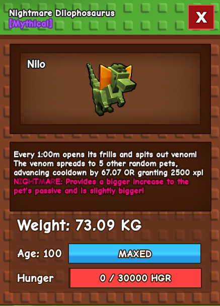 ✨Semi Titanic Nightmare Dilophosaurus 73.09kg + 74 SX Sheckles✨ |⛺ Grow a Garden |⚡ Instant Delivery