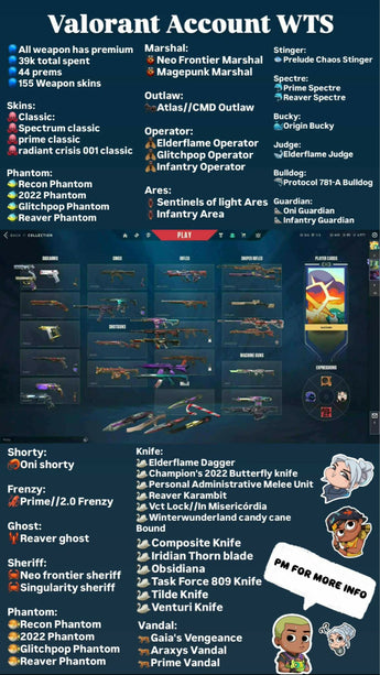 💎 VALORANT Premium Loaded Account | Fully stacked, high-value account with 89,000 VP spend, 37 premium weapon collections, 155 skins | 🎨 Premium Skins: