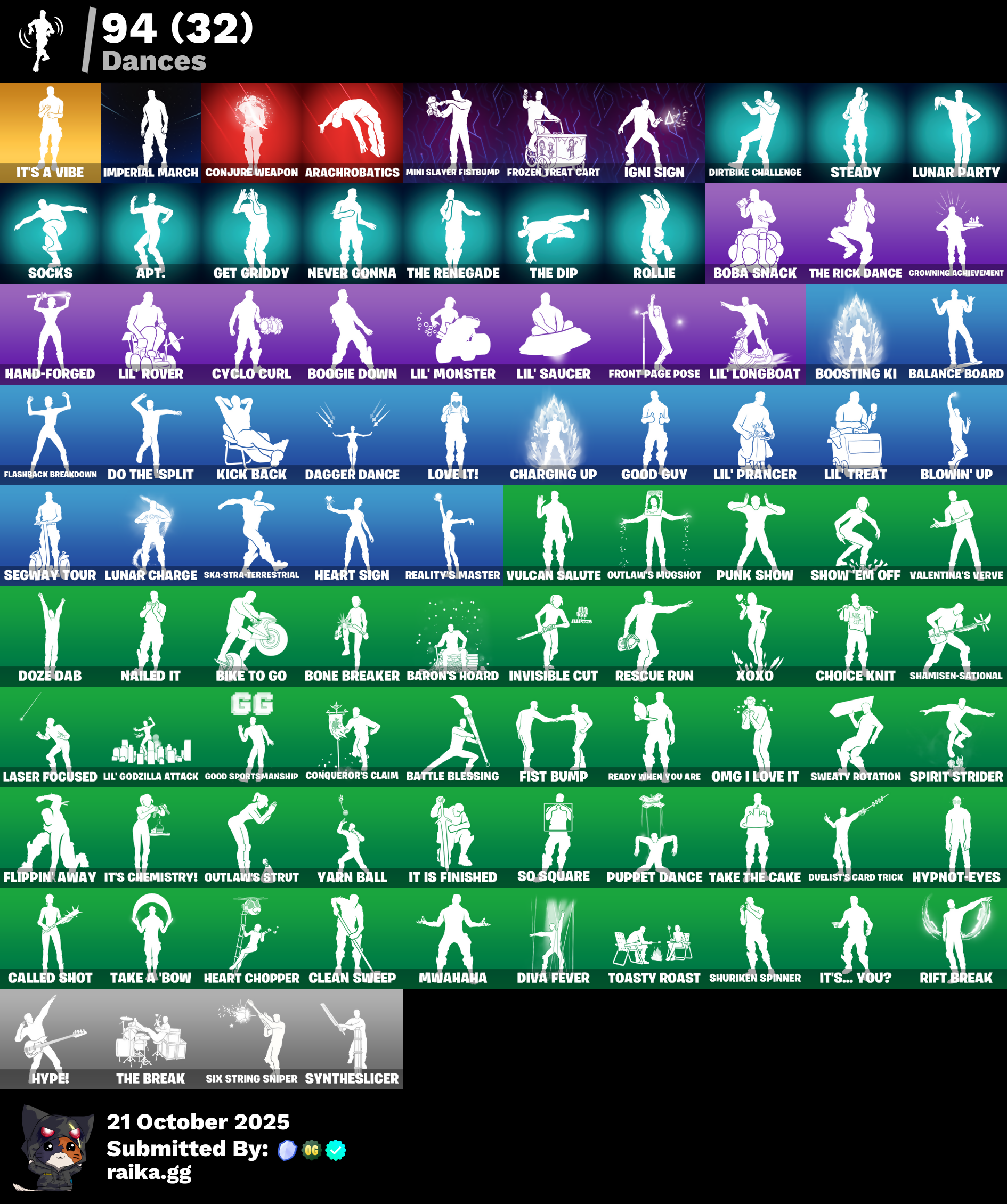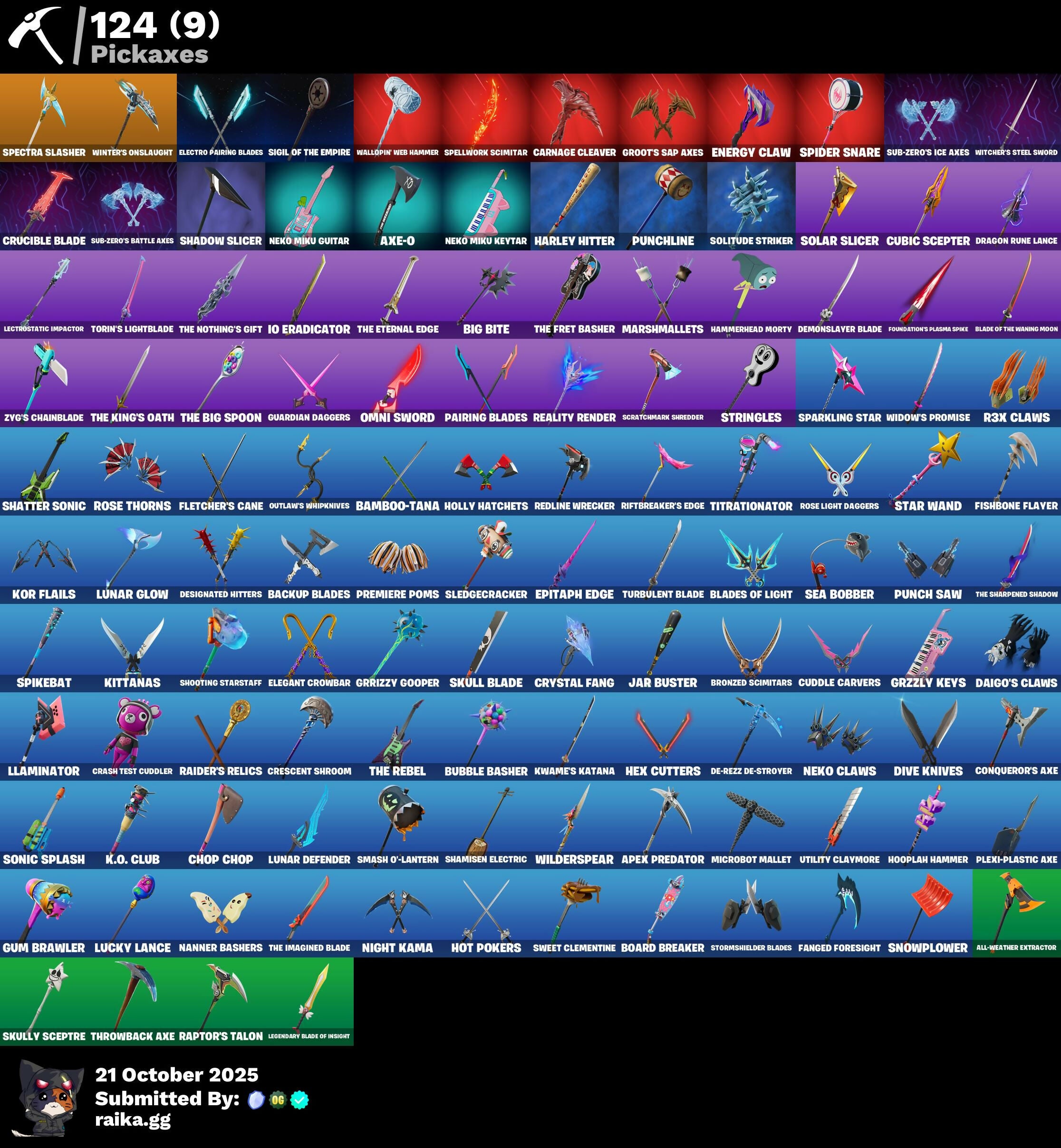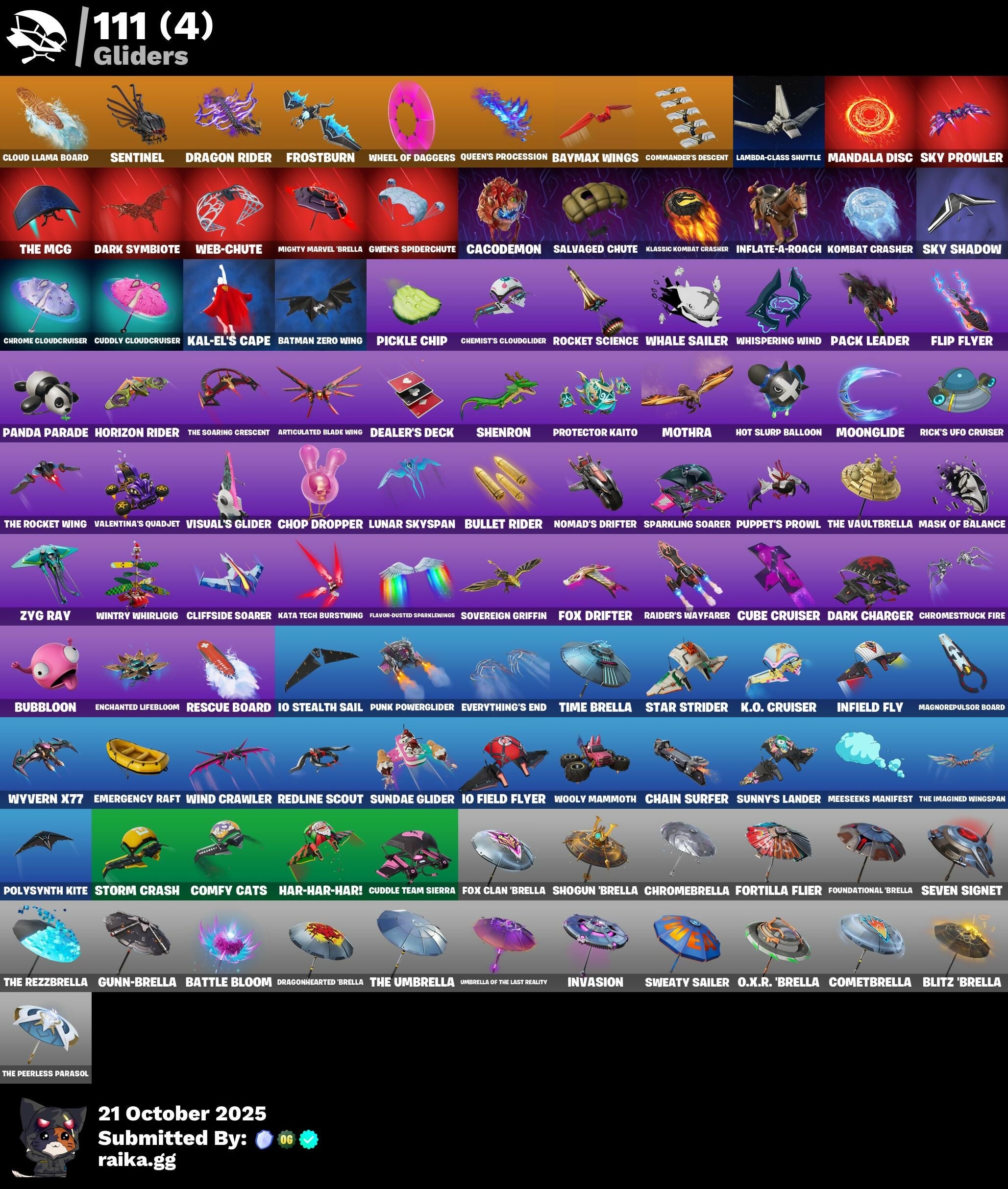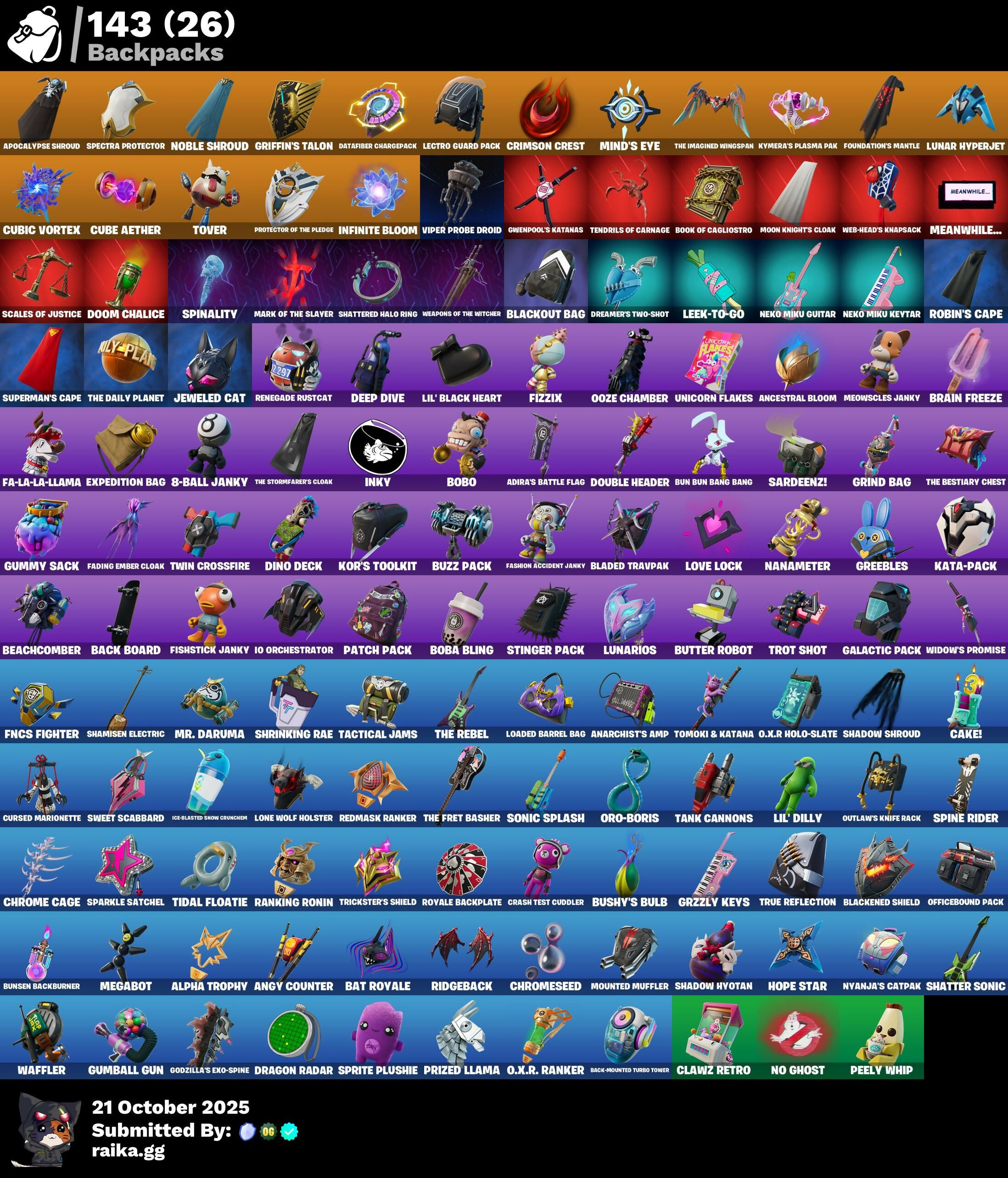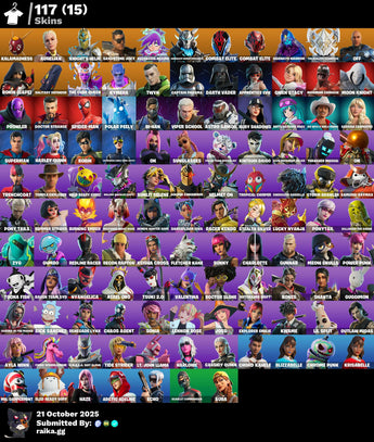 Outfits: Kalamadness | Aurelian | Knight's Helm | Sandstone Joey | Ascension Nezumi | Harbinger Armor Omegarok | Combat Elite | Combat Elite | Sideways Warrior | The Ageless Champion | off | Ronin (Cape) | Solitary Defender | The Cube Queen | Kymera | Twyn | Captain Phasma | Darth Vader | Apprentice Evie | Gwen Stacy | Maximum Carnage | Moon Knight | Prowler | Doctor Strange | Spider-Man | Polar Peely | Bi-Han | Viper School | Astro Armor | Ruby Shadows | Brite Hatsune Miku | Die With A Smile Bruno | Sabrina Carpenter | SUPERMAN | Harley Quinn | Robin | Catwoman Comic Book Outfit | on | sunglasses | Polar Team Specialist | Kintsugi Daigo | Club President Helsie | Thrasher Massai | on | Trenchcoat | Temple Explorer | Wild Beary Grriz | Bullpen Brawler Dusty | Sunlit Selene | Golden Conqueror | helmet on | Tropical Chirper | Energized Godzilla | Storm Brawler | Samurai Baymax | Pony Tails | Summer Strider | Burning Ember | Restored Night Ros