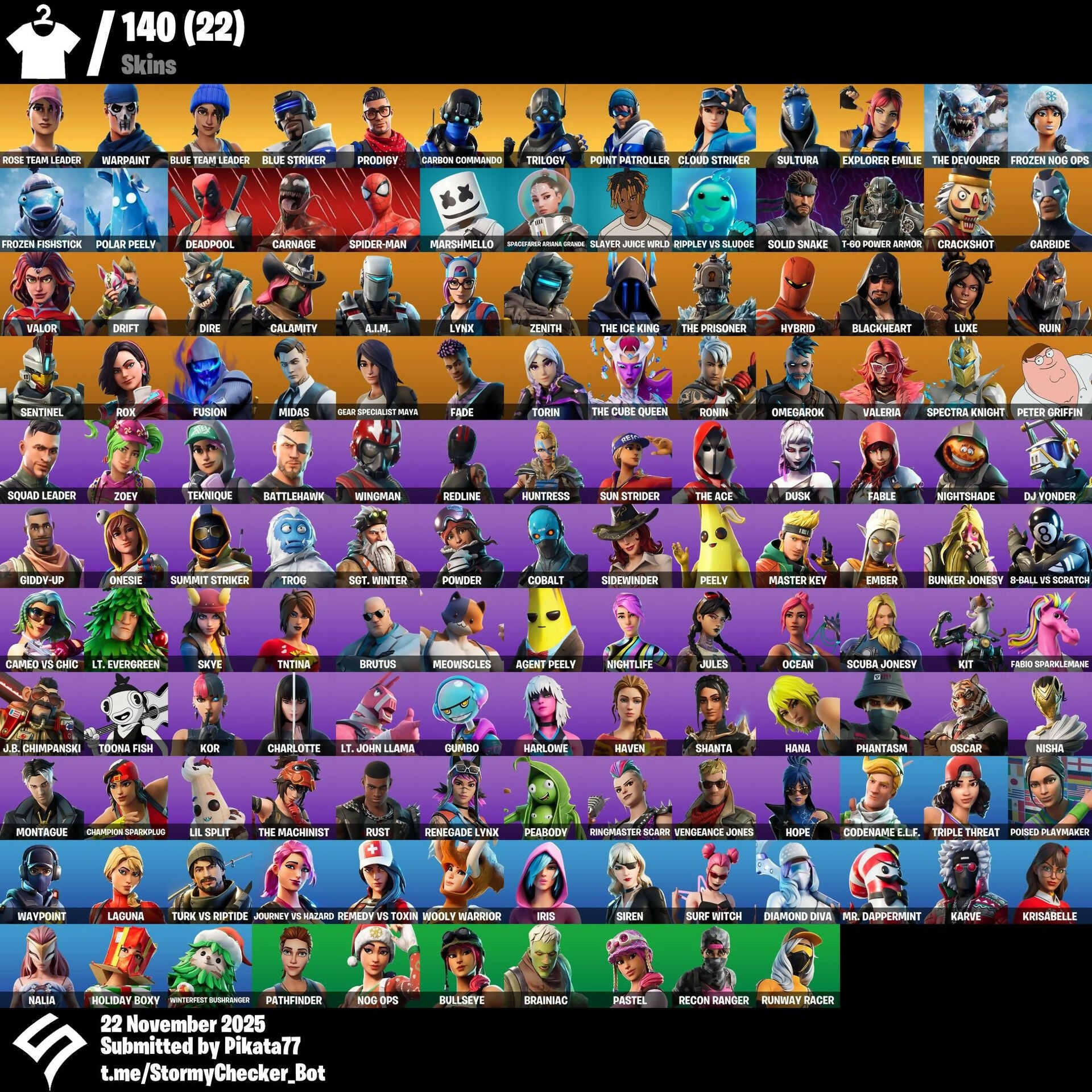 140 Skins | OG STW | Rose Team Leader | Warpaint | Explorer Emilie | Blue Team Leader | Blue Striker | Controller | Rose Glow | Mean Streak | GoGnome | LootLegend | S11-Dungeon01 | 200 VB