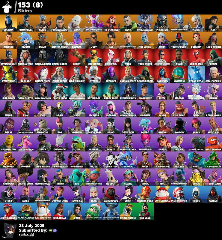 153 skins | Sultura | Reaper | Cymitar | Snowtooth | Pneumatic Twin | Verve | Astroworld Cyclone | Coaxial Blue | Omegarok | Ronin | 400 VB