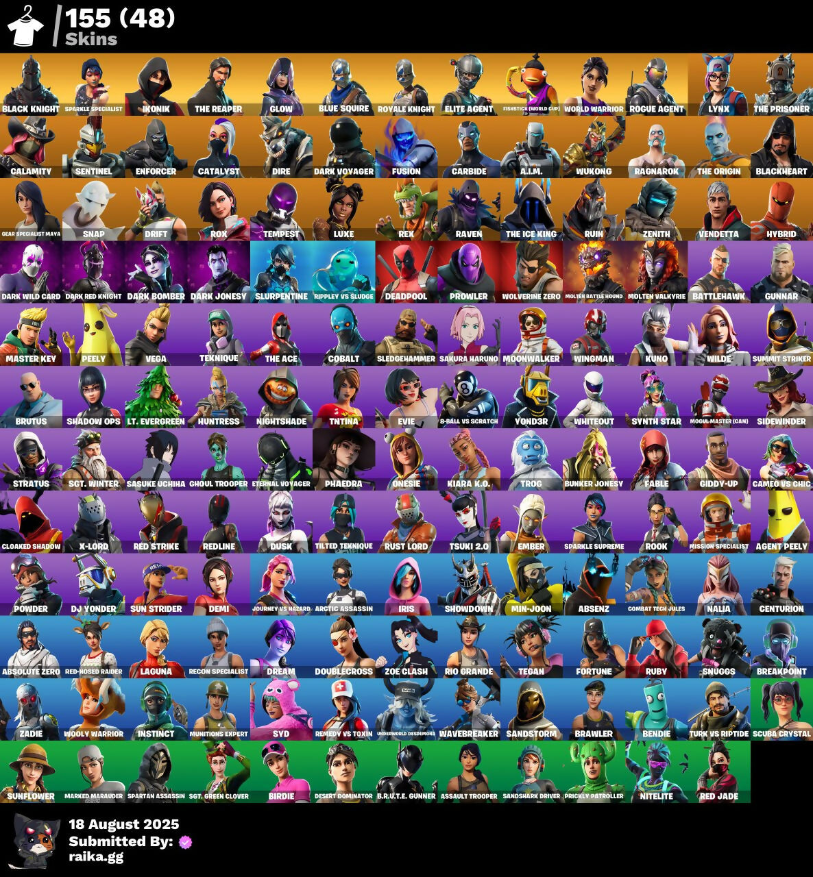 155 skins ☑️ Black Knight ☑️ Sparkle Specialist ☑️ IKONIK ☑️ The Reaper ☑️ Glow ☑️ Blue Squire ☑️ Royale Knight ☑️ Elite Agent ☑️ -2950 VB