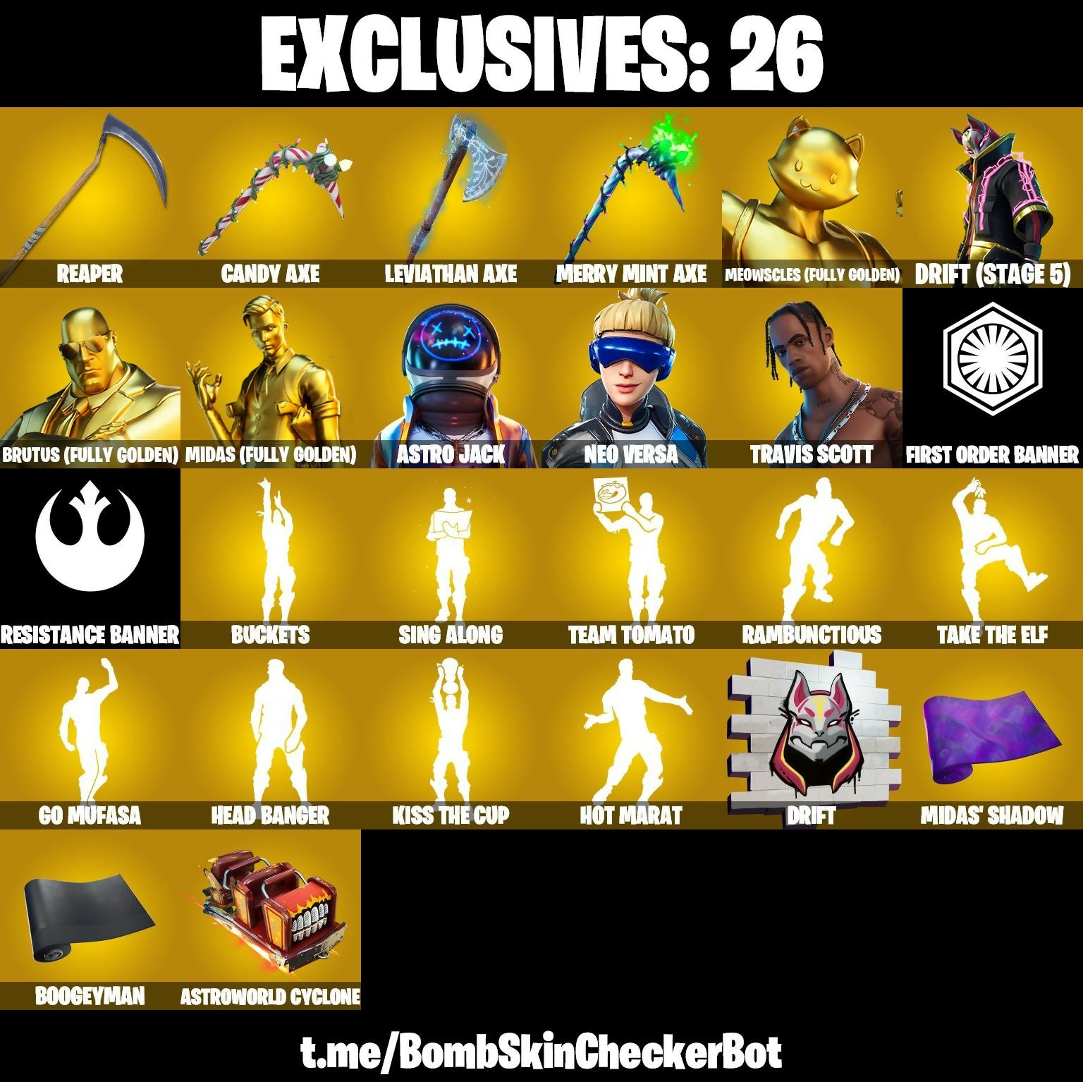 【 172 SKINS 】 TRAVIS SCOTT ❤️ GOLD MIDAS ❤️ ASTRO JACK ❤️ CANDY AXE ❤️ (PC/PSN/XBOX)