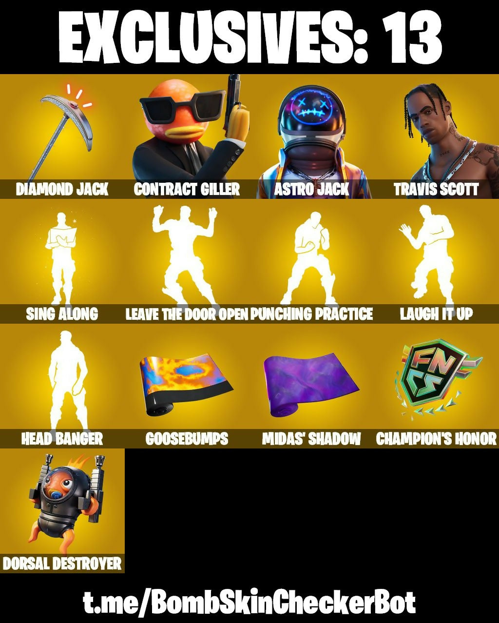 [176 SKINS] ⭐️ TRAVIS SCOTT ⭐️ ASTRO JACK ⭐️ CONTRACT GILLER ⭐️ DIAMOND JACK ⭐️ CHAMPION'S HONOR ⭐️ SPIDER-MAN ⭐️ DOOM ⭐️ TNTINA ⭐️ (PC/PSN/XBOX)
