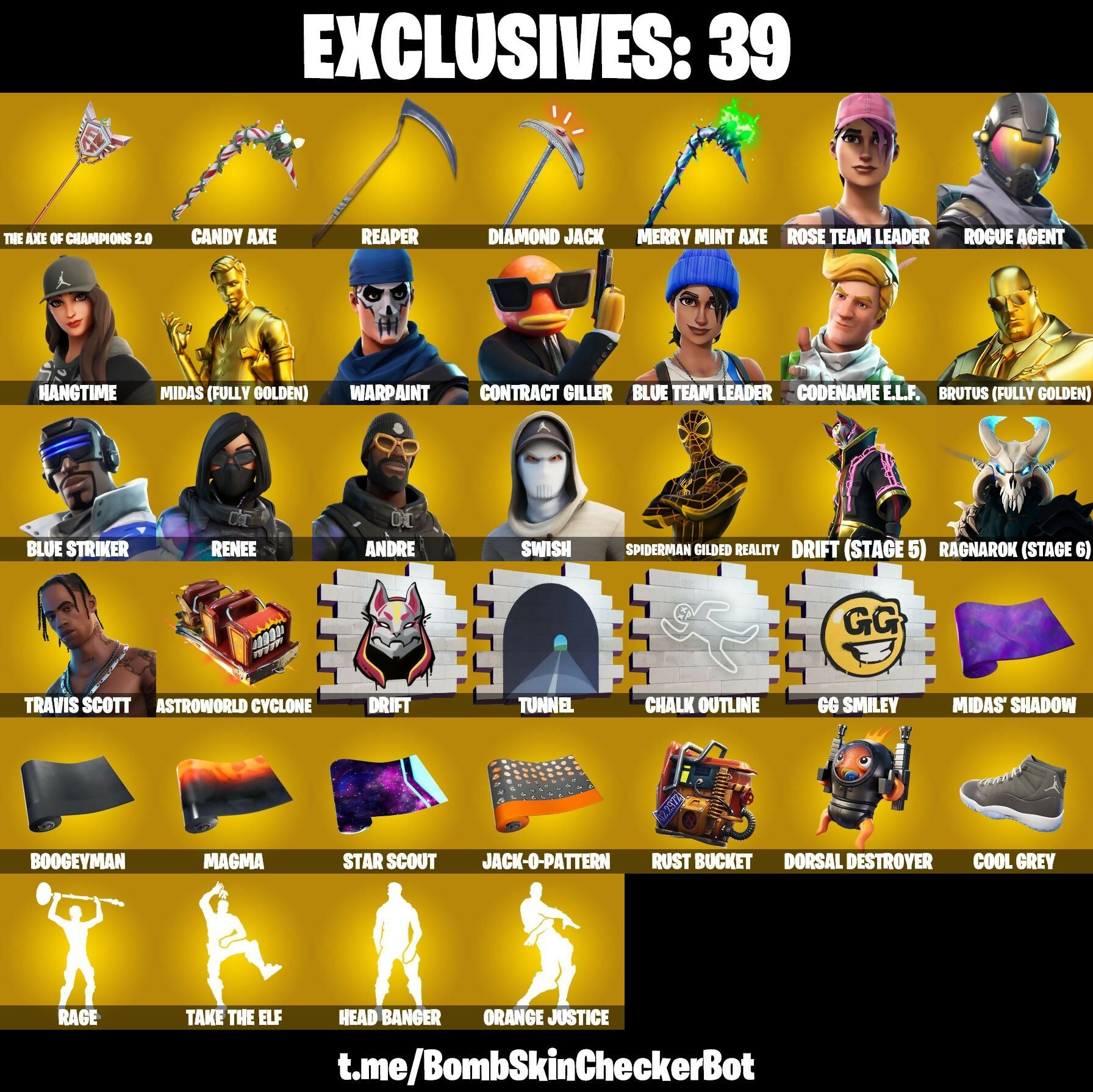 [197 SKINS] ⭐️ TRAVIS SCOTT ⭐️ RENEE ⭐️ HANGTIME ⭐️ WARPAINT ⭐️ GOLD BRUTUS ⭐️ REAPER ⭐️ CANDY AXE ⭐️ THE AXE OF CHAMPIONS 2.0 ⭐️ (PC/PSN/XBOX)