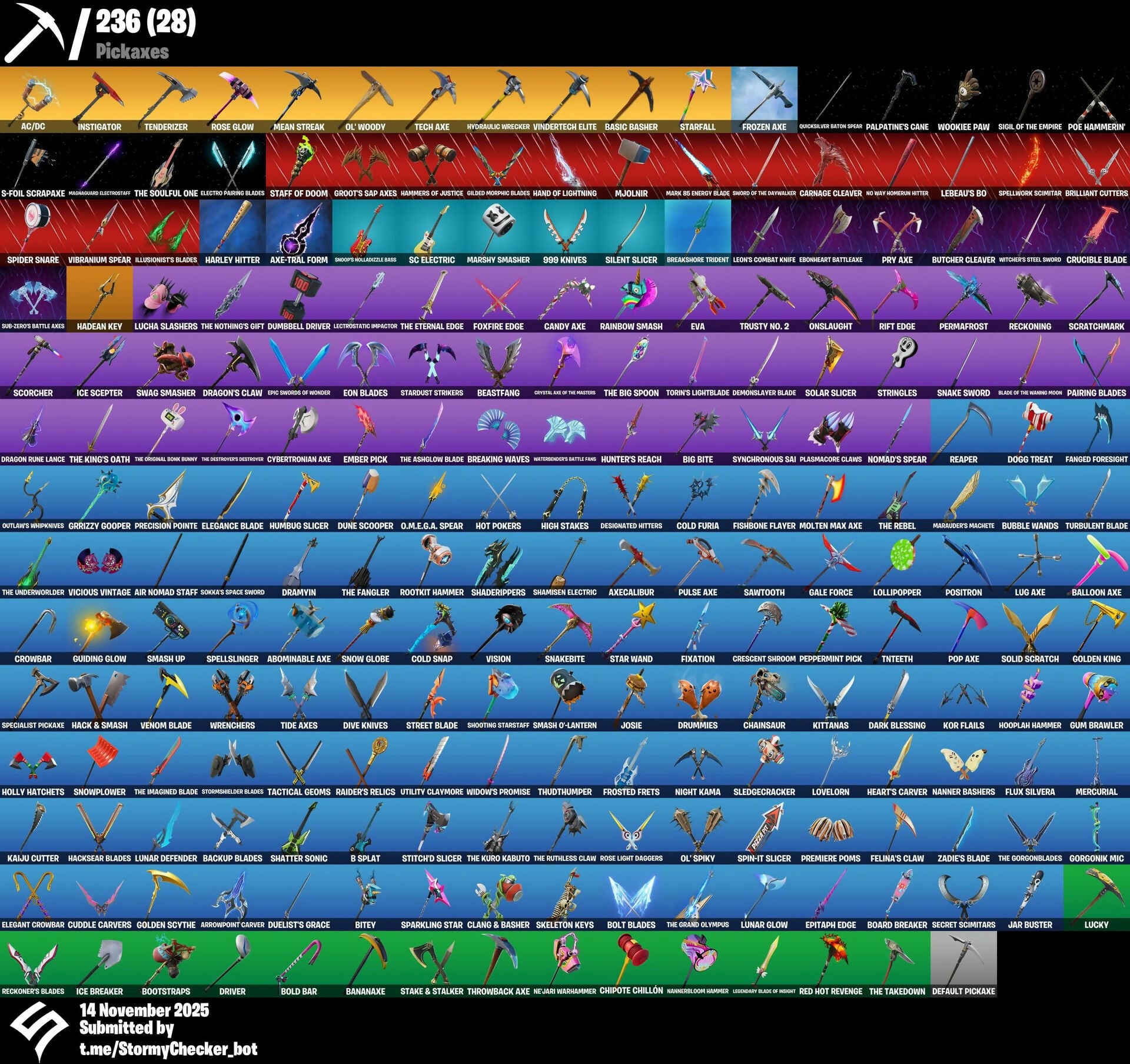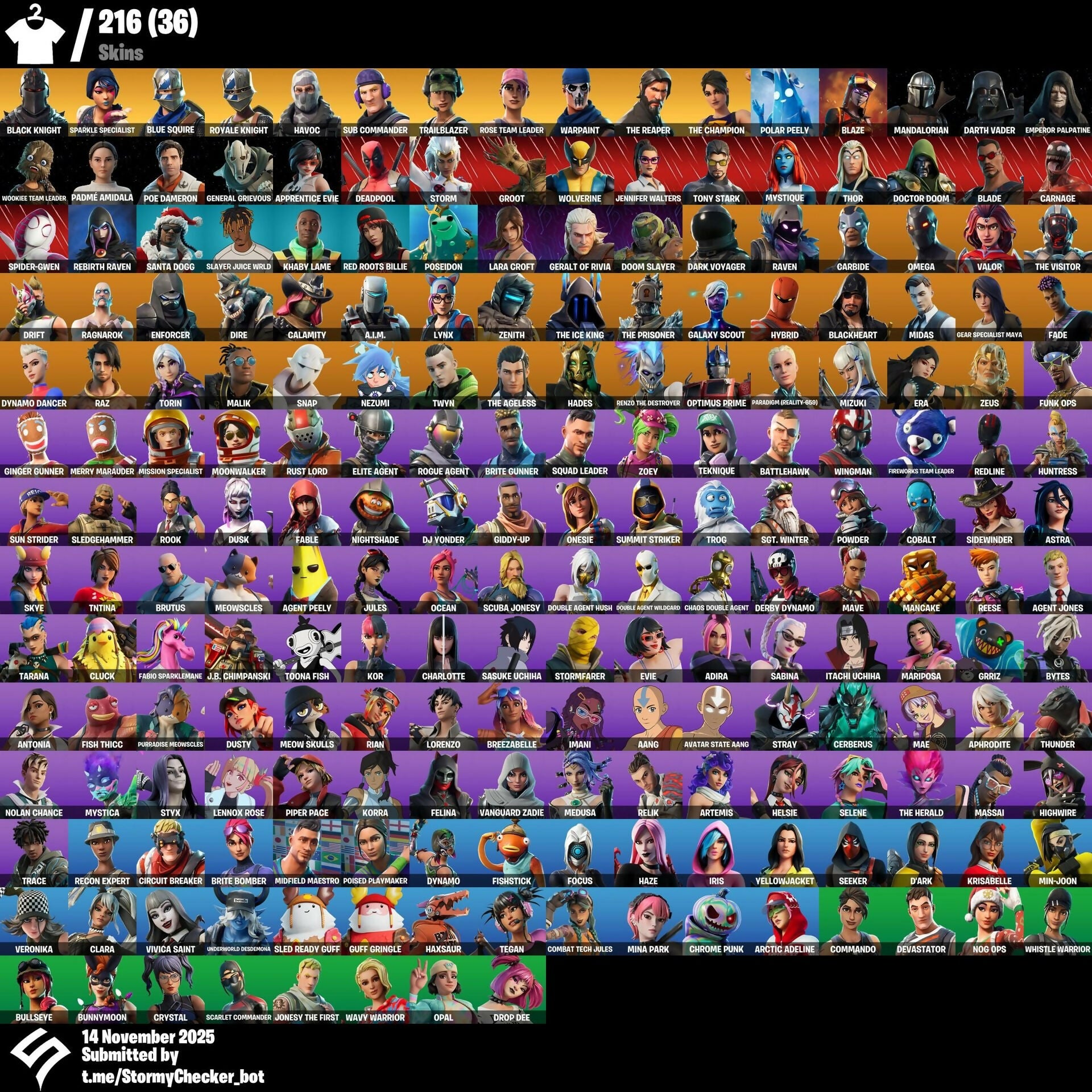 216 Skins | OG STW | Black Knight | Sparkle Specialist | Blue Squire | Royale Knight | Havoc | Sub Commander | Trailblazer | Rose Team Leader | AC/DC | Instigator | Tenderizer | BRSeason1 | HordeDesert-01 | 1250 VB