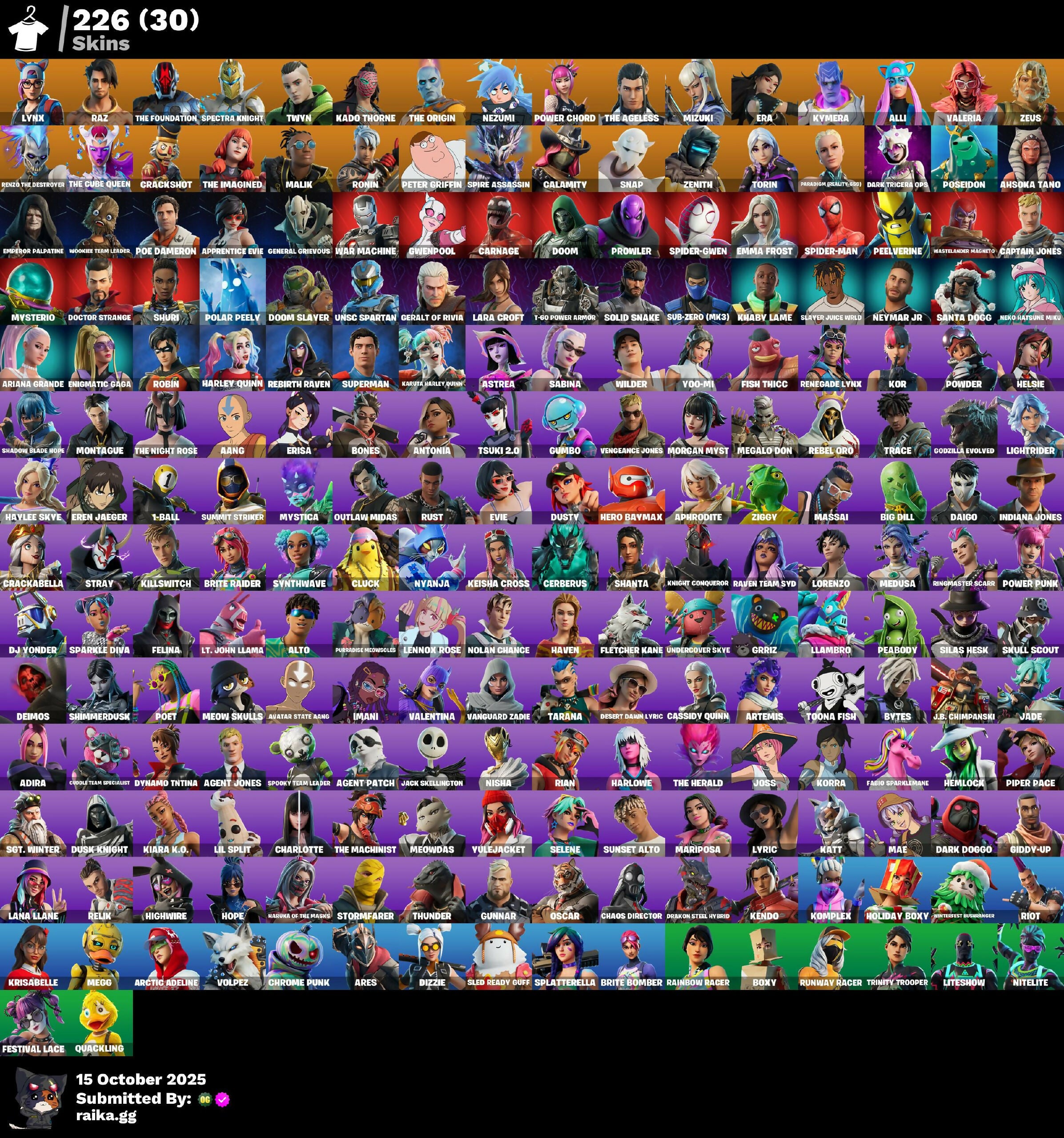 226 skins | Lynx | Raz | The Foundation | Spectra Knight | Twyn | Kado Thorne | The Origin | Nezumi | Power Chord | The Ageless | Mizuki | Era | 1350 VB