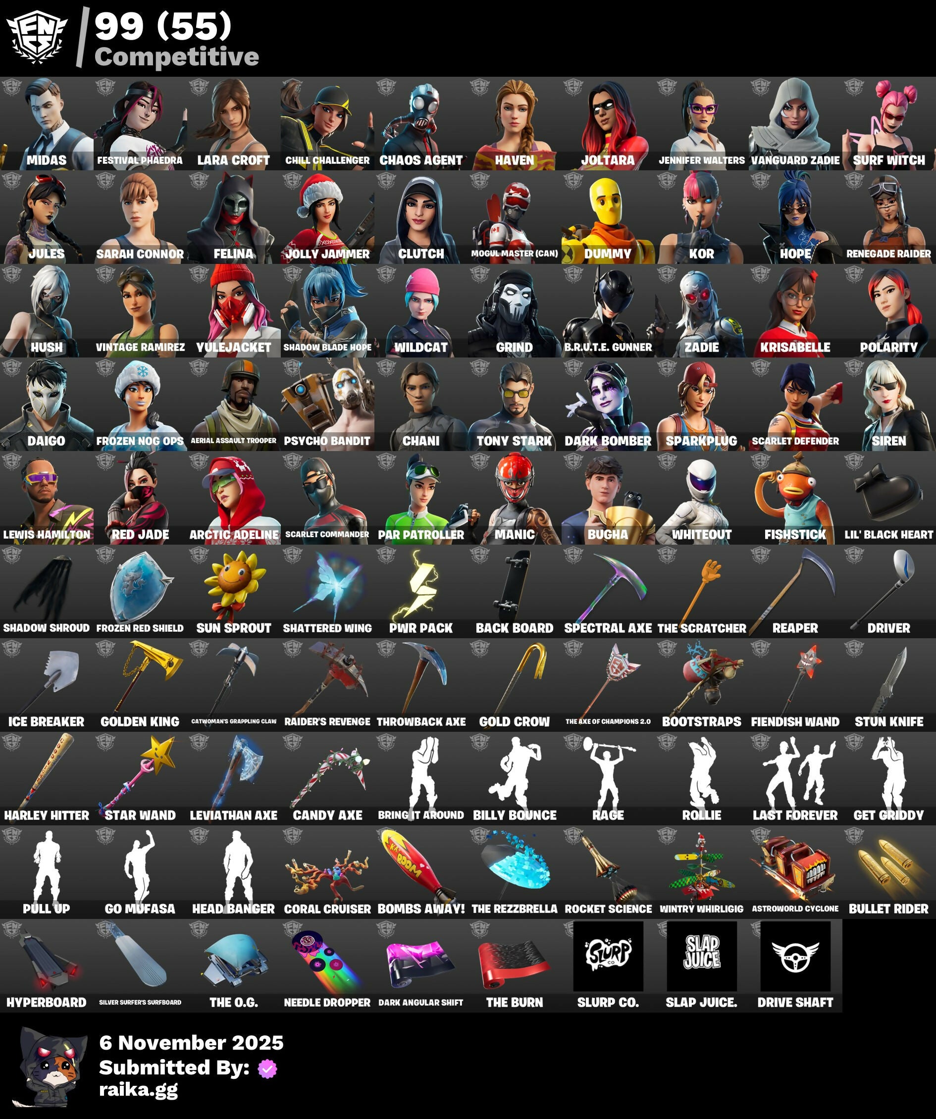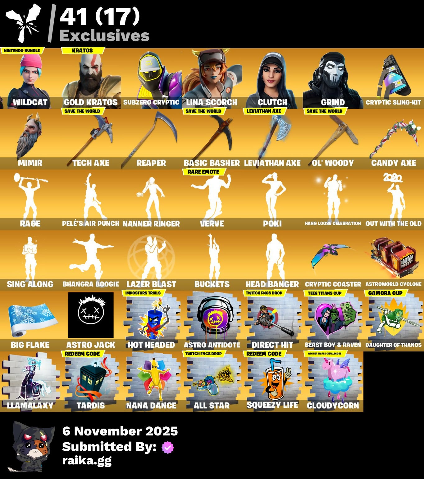 281 skins ✅ Wildcat ✅ Gold Kratos ✅ Subzero Cryptic ✅ Lina Scorch ✅ Clutch ✅ Grind ✅