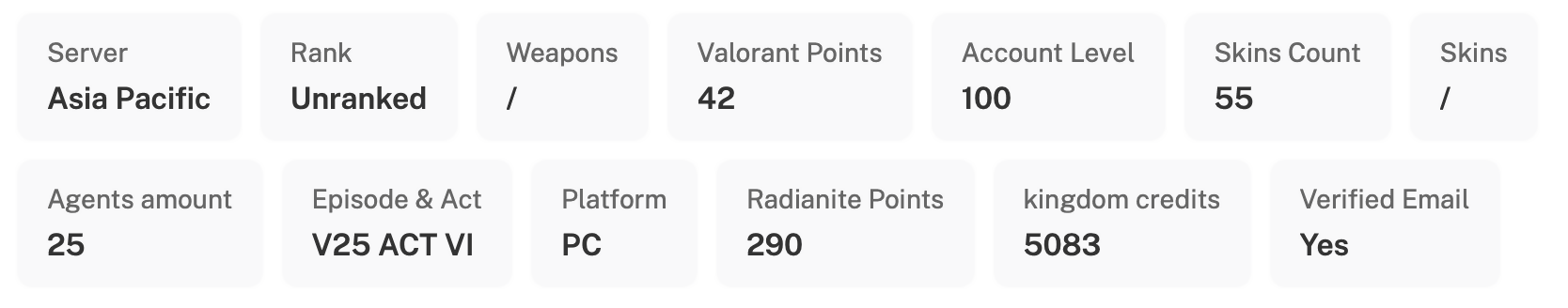 ✅ Valorant Points: 42. Radiant Points: 290.