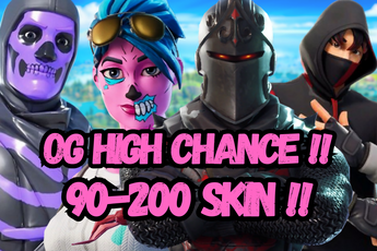 90-200 , Chance for (Travis Scott ,OG Ghoul Trooper, Renegade Raider , Black Knight ,Galaxy, IKONIK , OG Skull Trooper, Sparkle Specialist , Take the L or Others skins).