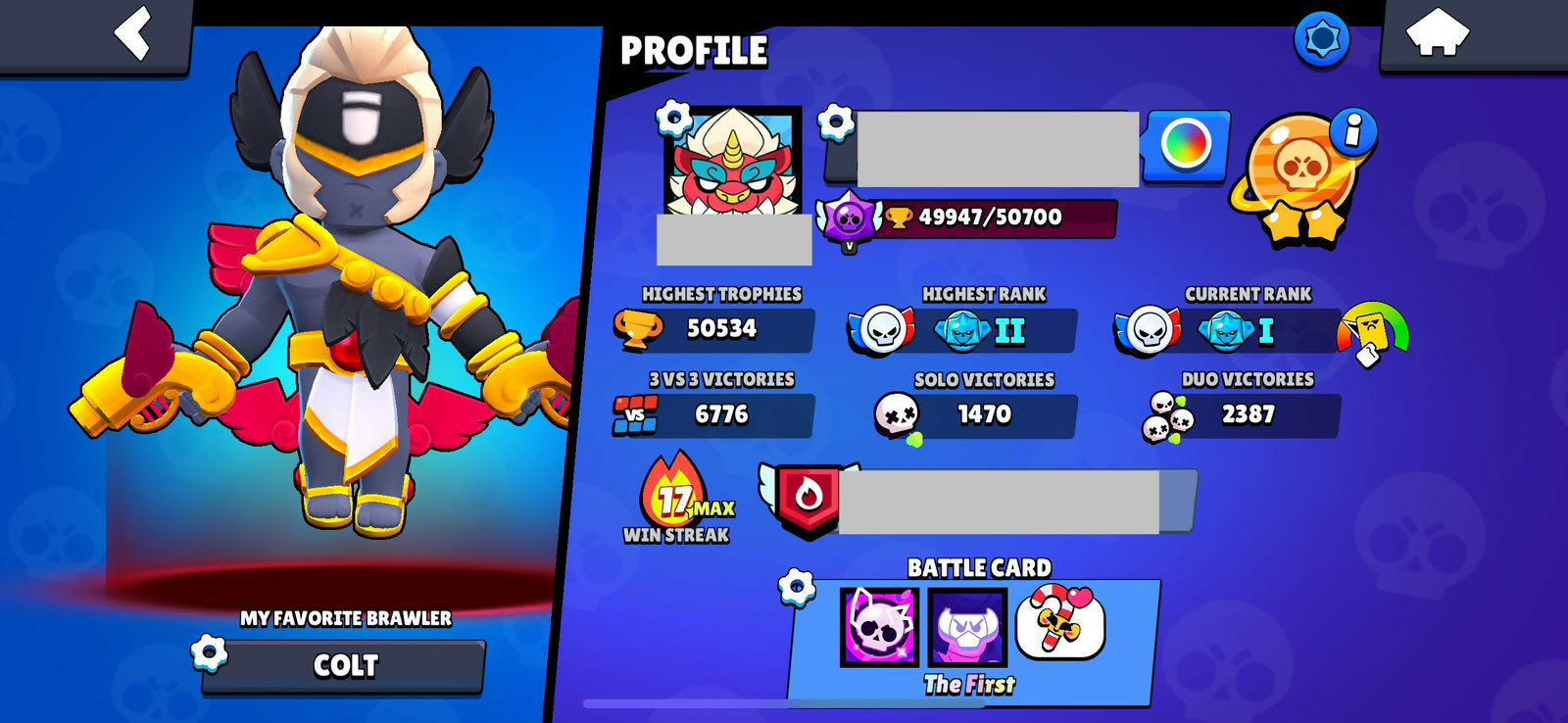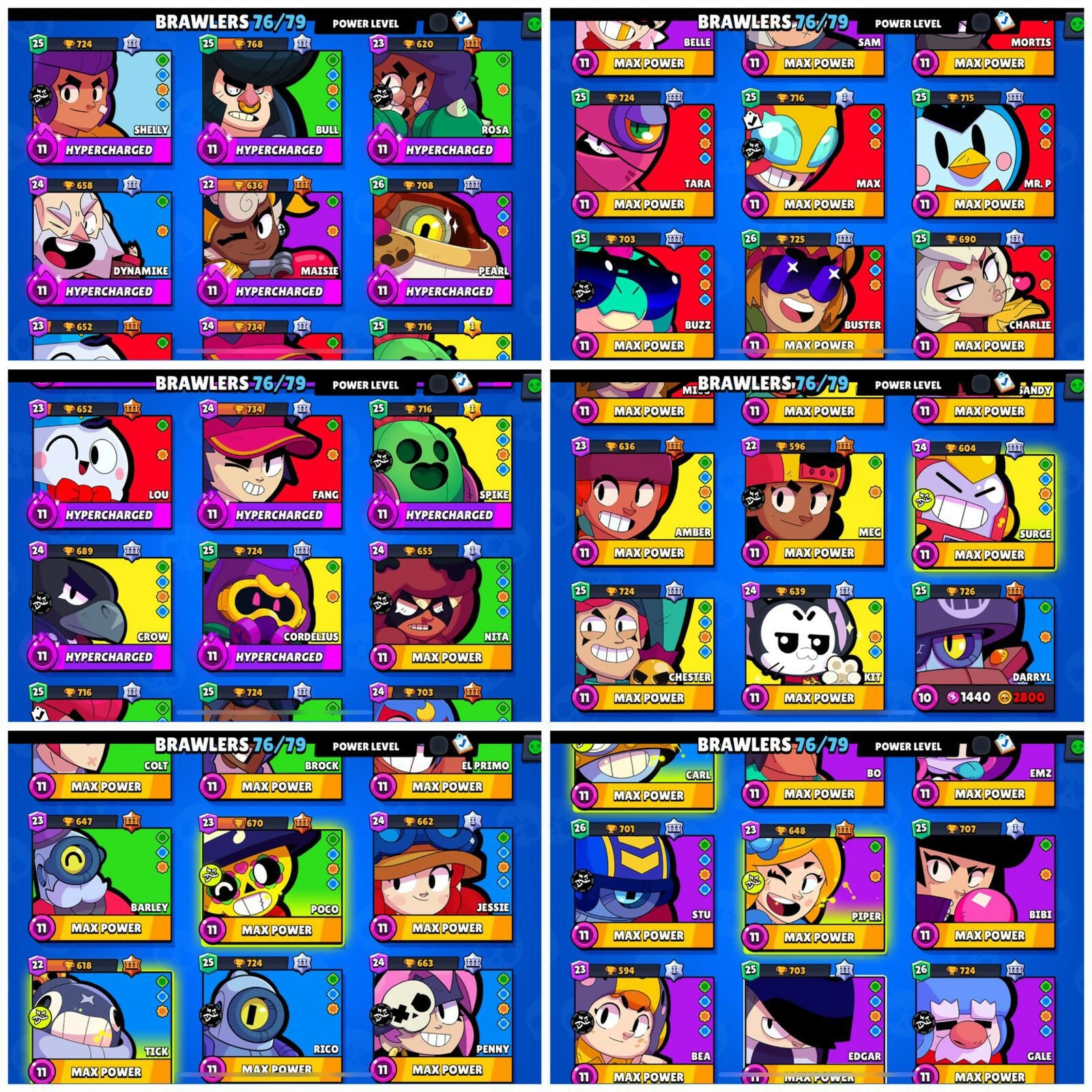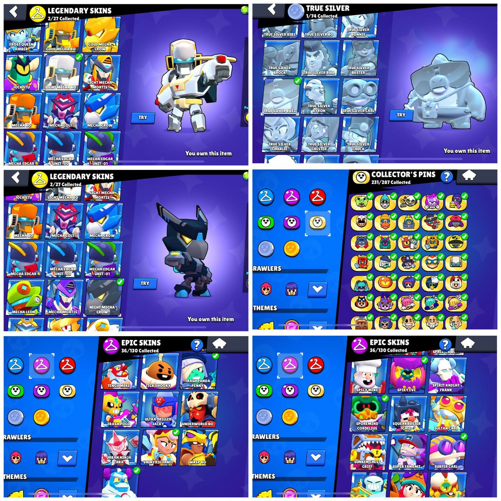 50K HIGHEST TROPHIES-76/79 BRAWLERS-47 MAX POWER(11 HYPERCHARGED)-36 EPIC SKINS-2 LEGENDARY-32 SUPER RARE-32 RARE-TRUE SILVER BUZZ-231 COLLECTOR PINS