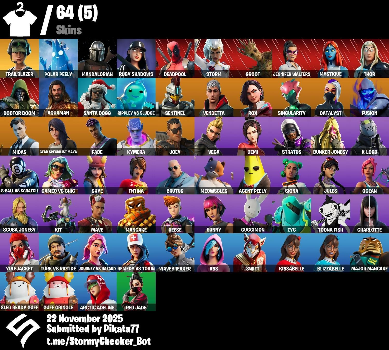 64 Skins | Trailblazer | Santa Dogg | Yulejacket | Sled Ready Guff | Guff Gringle | Tenderizer | Default Pickaxe | Dogg Treat | BRSeason1 | 450 VB