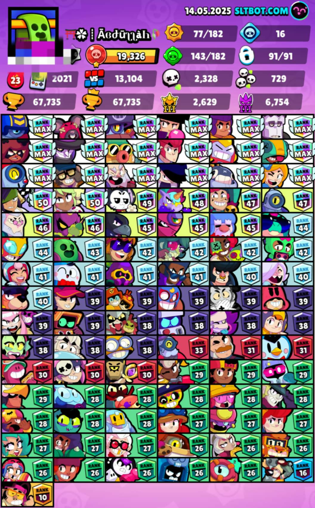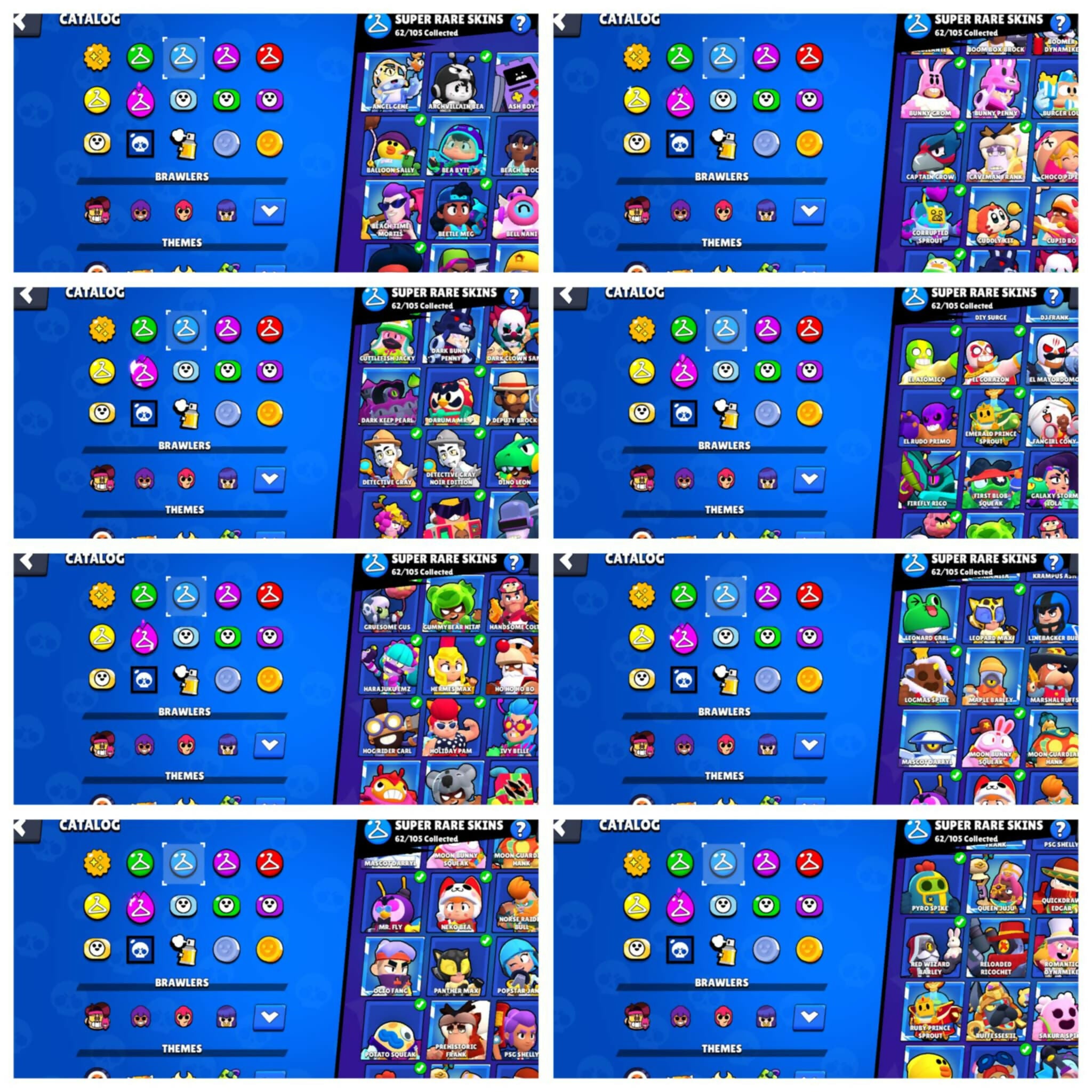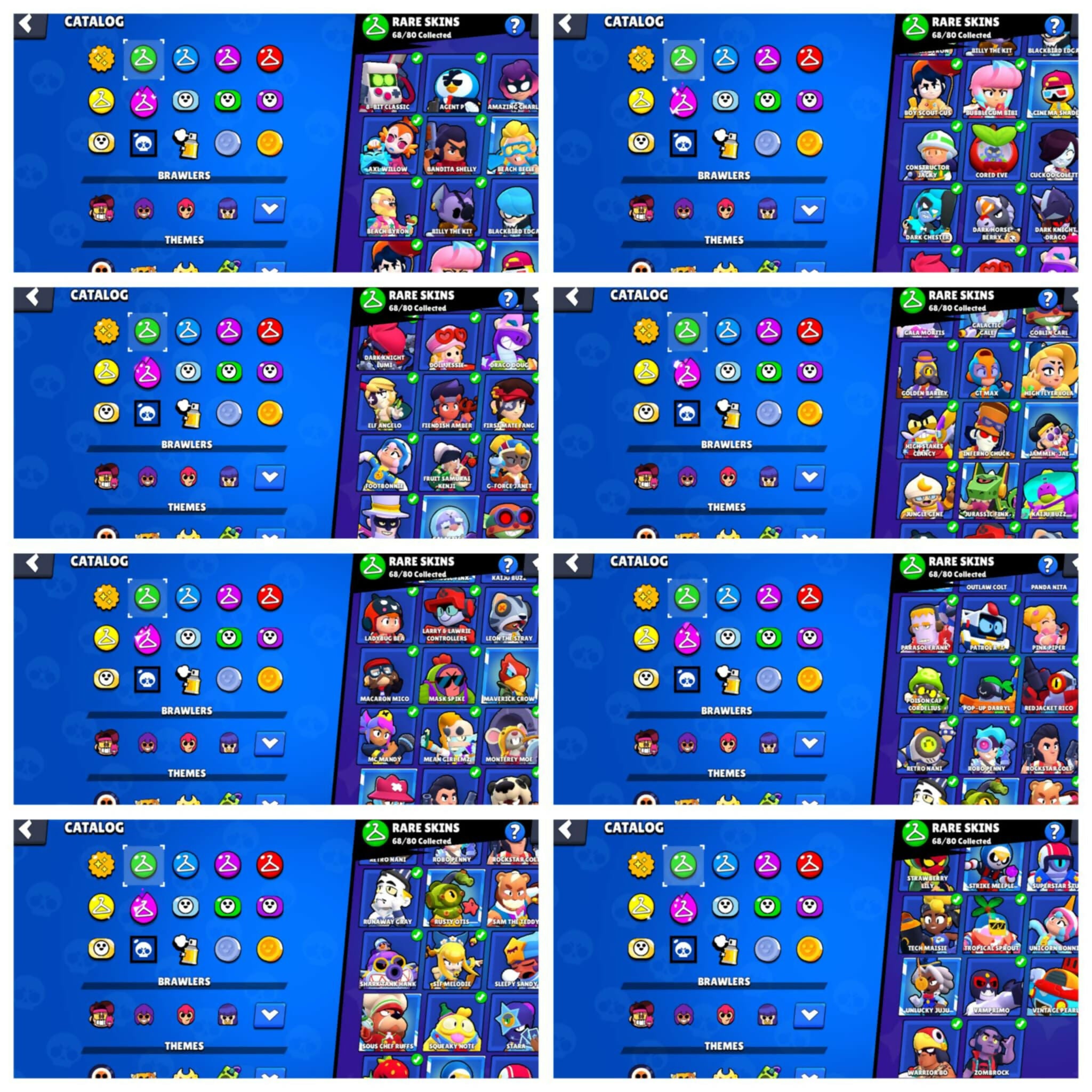68K TROPHIES - 91 BRAWLERS - 180+ SKINs - 36 MAXED - 1600 CREDITS AVAILABLE - 2 SKINS OF MAY SUSHI EVENT INCLUDED SpongeBob El Primo , Classic Dynamic , Squad Buster Shelly , White Wolf Leon , Antivirus 8-bit , Godzilla Buzz , 3 Sovereign Riko , Super Ra