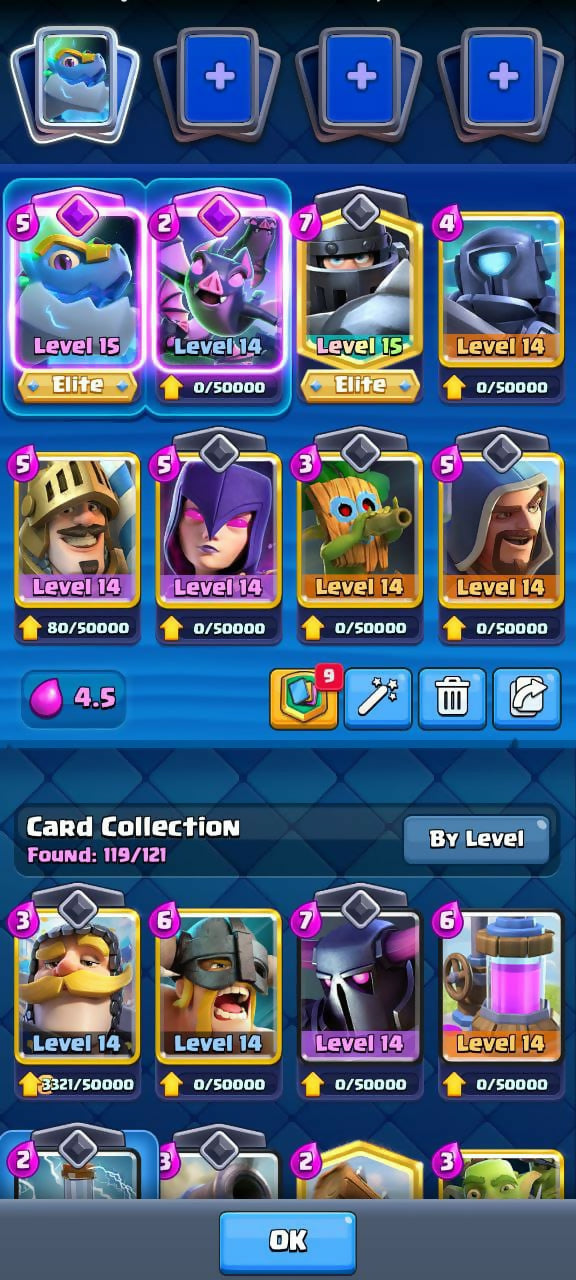 ? 7.4K+ TROPHIES ELITE ACCOUNT ? | ?LEVEL 47 CHAMPION⚔️ | ⚡8 EVO CARDS? | ?14 MAX CARDS? | ?2 ELITE CARDS? | ?119 TOTAL CARDS? | ?OP EMOTES? | ?6 TOWER DECO? | ?READY TO CLASH✨