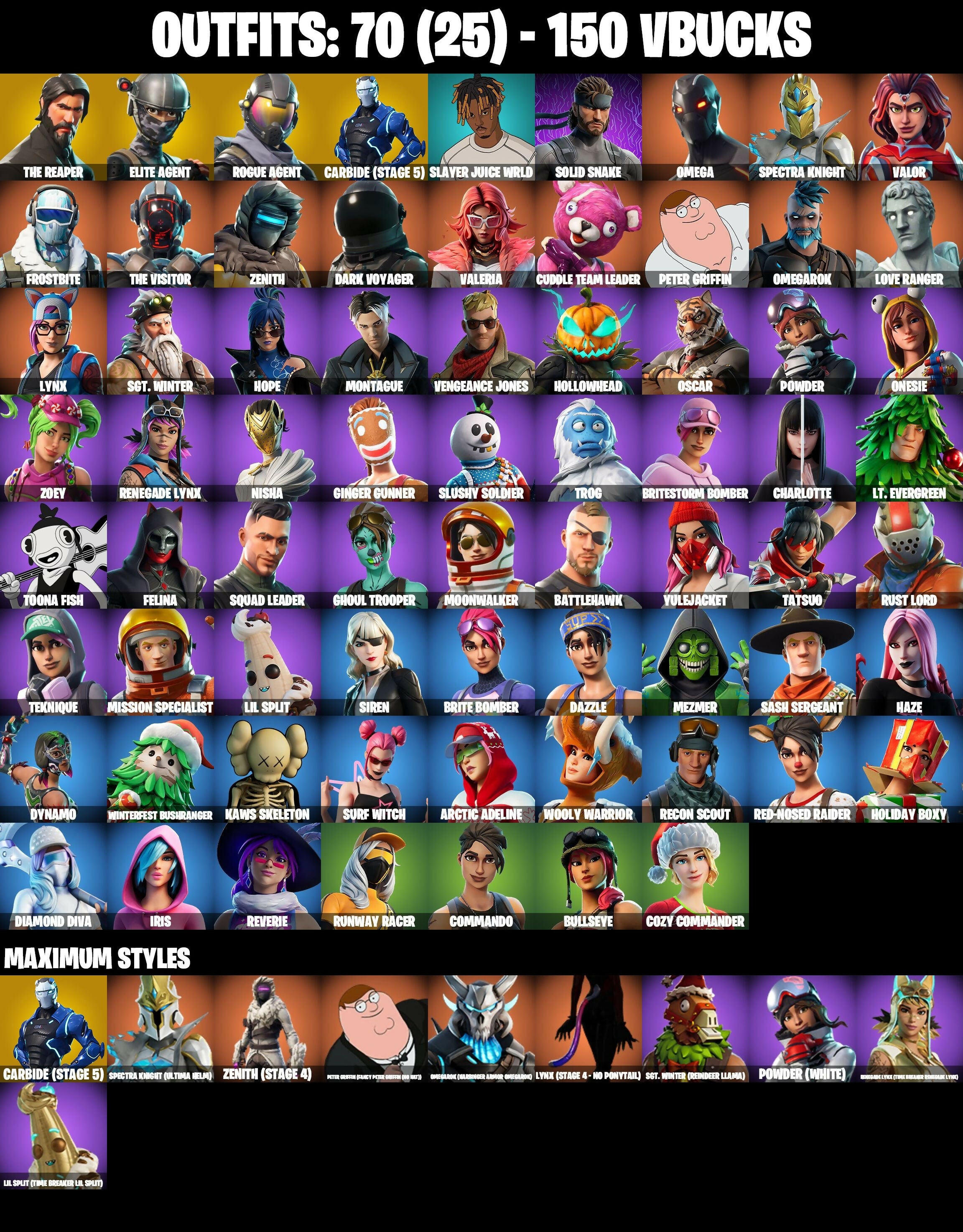 70 Skins | The Reaper , Hot Marat , Take The L , Rage , Rogue Agent , Elite Agent , Take The Elf | 150 VBucks | [PC/PSN/NINTENDO]