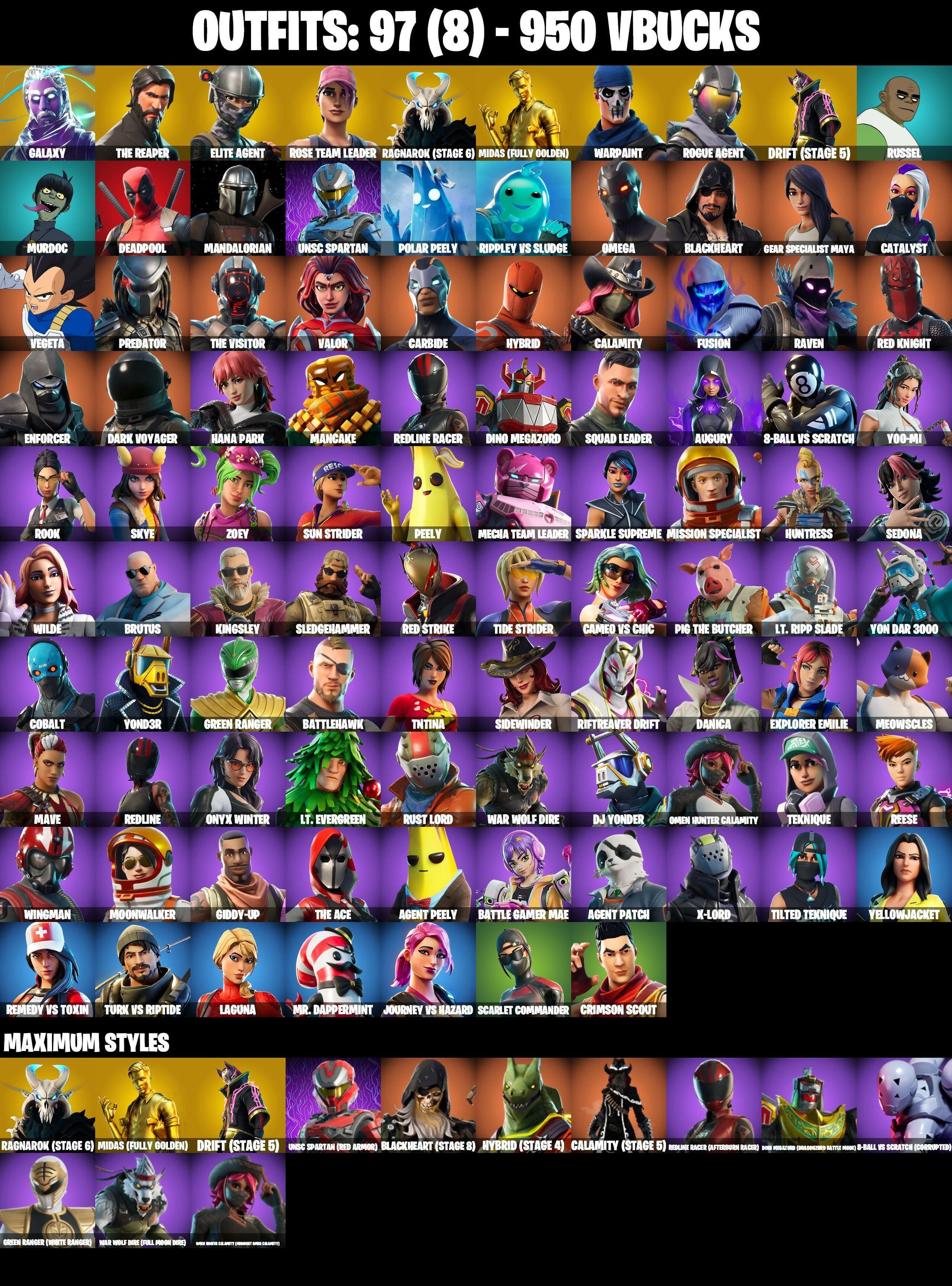 97 Skins | Galaxy , The Reaper , OG STW , Take The L , Midas (Fully Golden) , Rogue Agent | 950 VBucks | [PC/PSN/XBOX/NINTENDO]