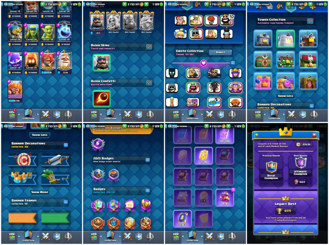 [ Almost MaxOut ] ? Level 66 + ? KT 15 ? 131 Emotes ? 12,000 Trophies β 118 Max Cards {60 Elites} + β¨ 18 Evos β Name Changable ? 2.7M Gold | ? 166 Banners + ? 181 Frames β‘ Instant Delivery