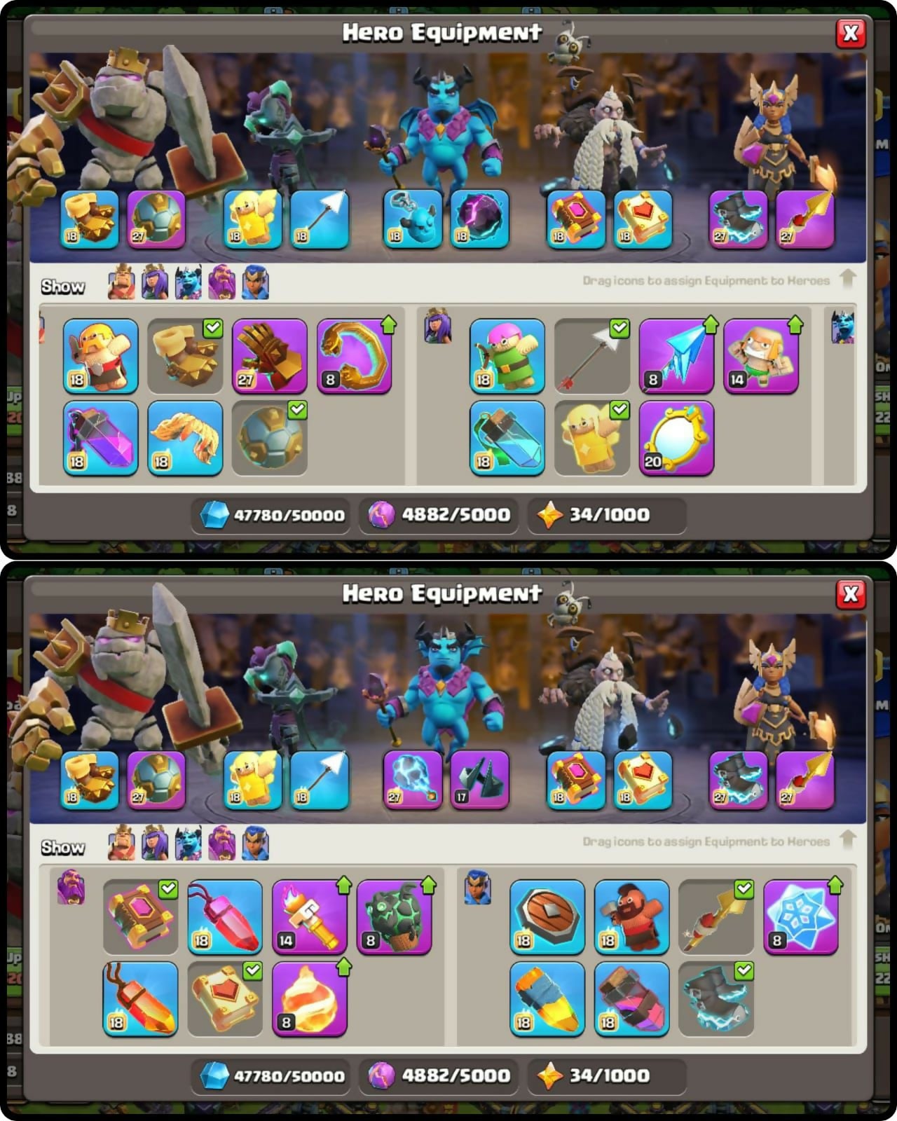 FESTIVE RARE 5100 WAR STARS | MAXED QUEEN AND WALLS TH18 MAX XP 242 | 5 EPIC EQUIPMENTS MAX || PRESTIGE 15K LEGEND CUPS || 10 SKINS, 14/14 EPICS // GAUNTLET 27, ARROW 8, FIREBALL 8, ROCKET SPEAR 27, SPIKY BALL 27, MAGIC MIRROR 20, LAVALOON PUPPET 8, ELECTRO BOOST 27, SNAKE BRACELET 8, ACTION FIGURE 14, DARK CROWN 17, HEROIC TORCH 14, METEOR STAFF 27, FROST FLAKE 8