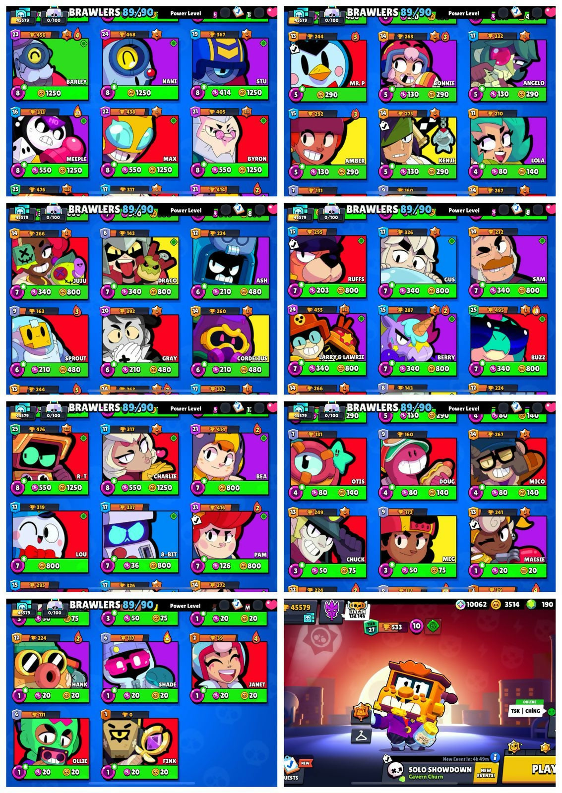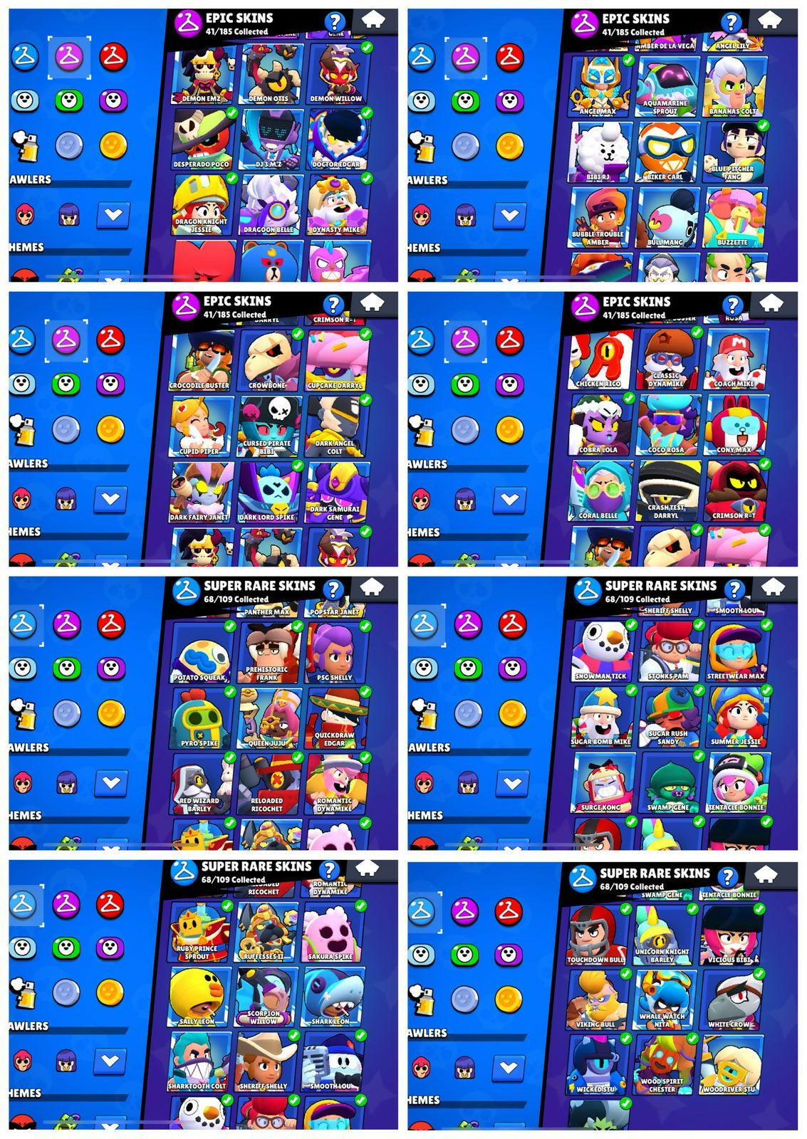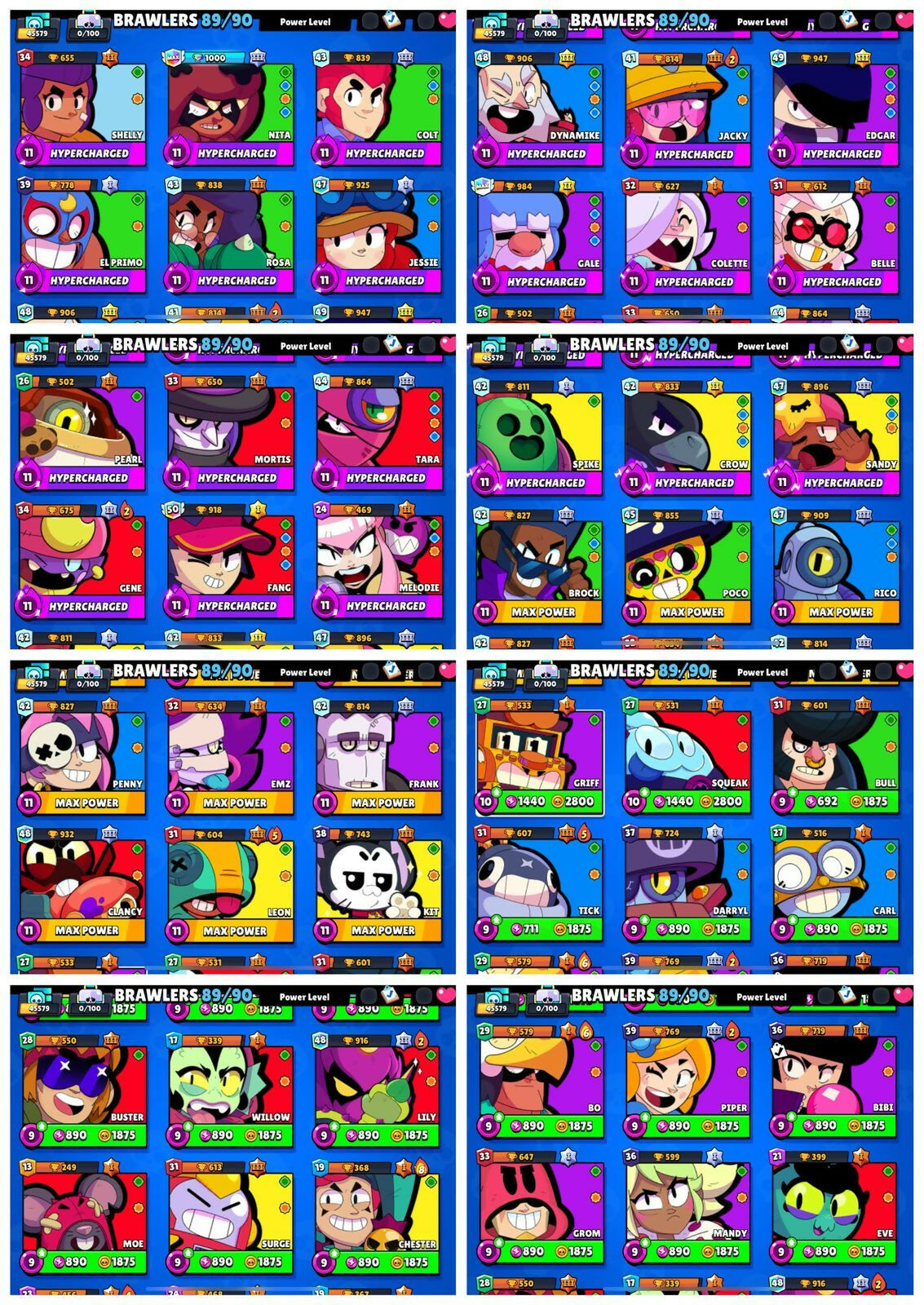 CLASSIC SHELLY DYNAMIKE 177 SKINS 45K TROPHIES - 89 BRAWLERS - 30 MAX POWER(21 HYPERCHARGED) - 190 GEMS - TEMPEST TARA HANDSOME COLT OLD SCHOOL BROCK