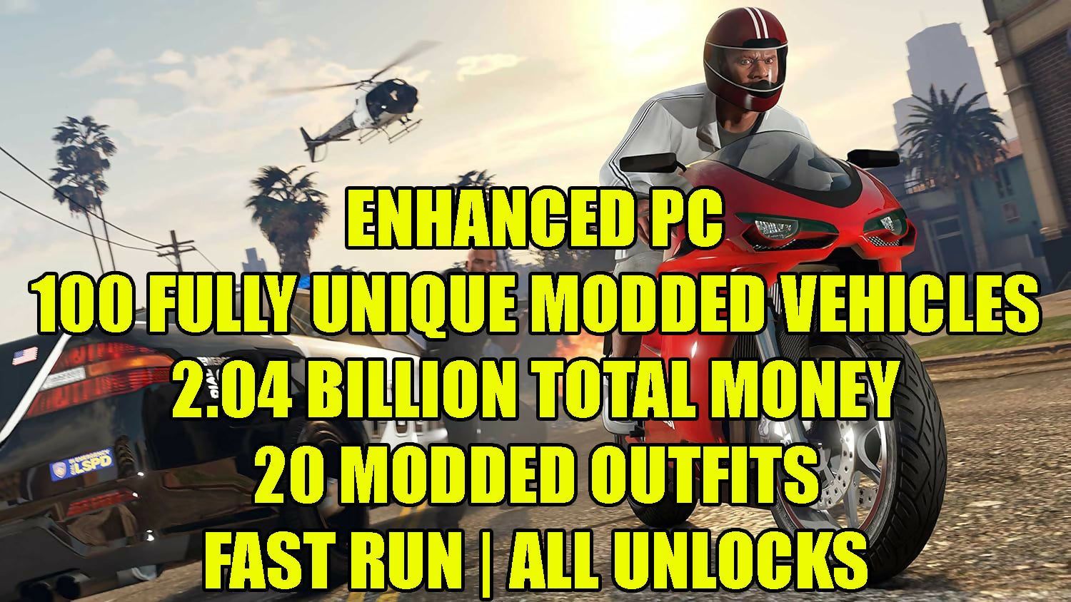 ENHANCED PC | 2.04 BILLION TOTAL MONEY + FAST RUN + ALL UNLOCKS + 100 FULLY UNIQUE MODDED VEHICLES + 20 MODDED OUTFITS | GAME PURCHASED | RP 777 | 2 BILLION KD