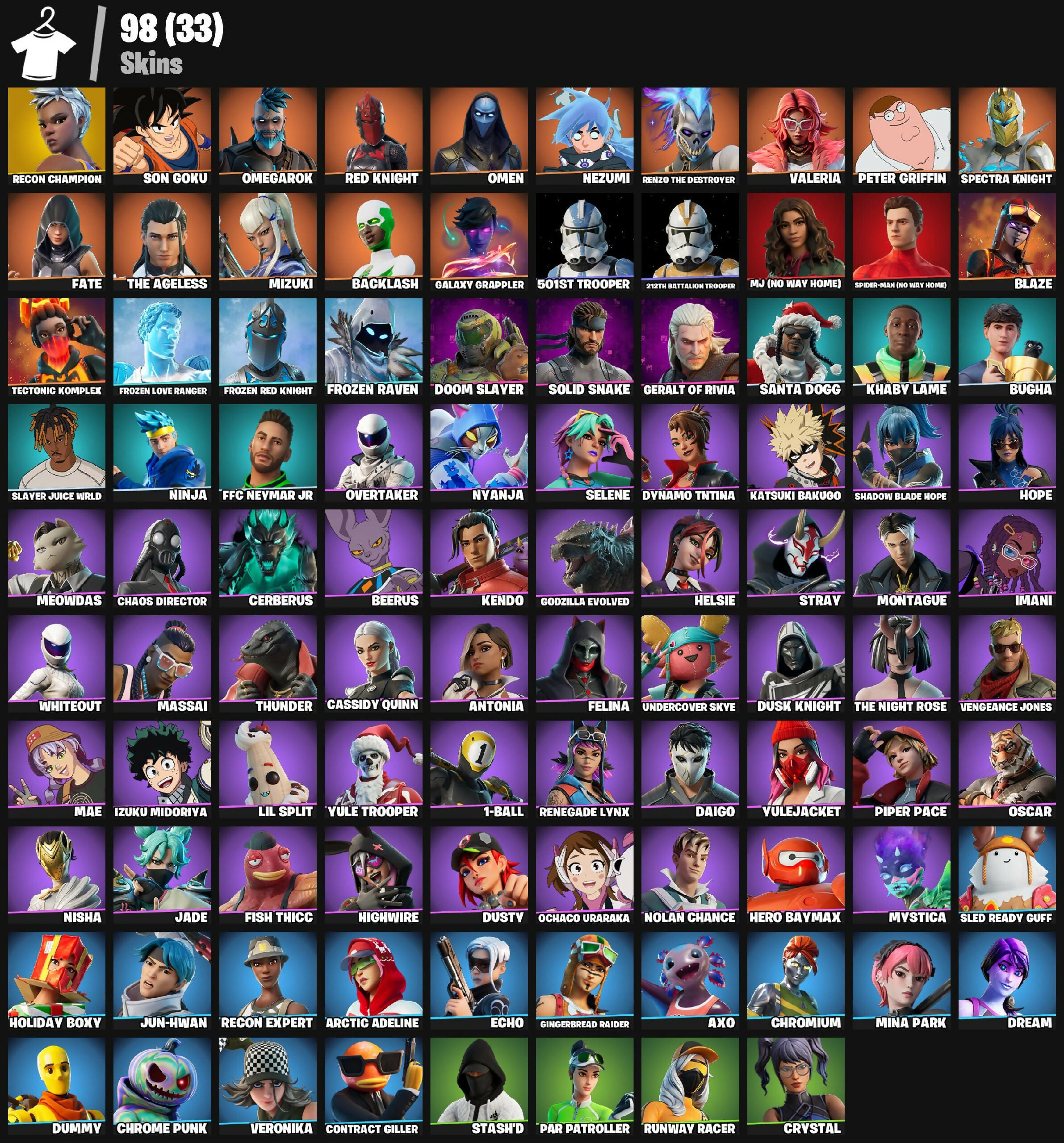 #IS5018 [PC/XBOX] 98 skins | Recon Champion | Son Goku | Omegarok | Red Knight | Omen | Nezumi | 1100 VB
