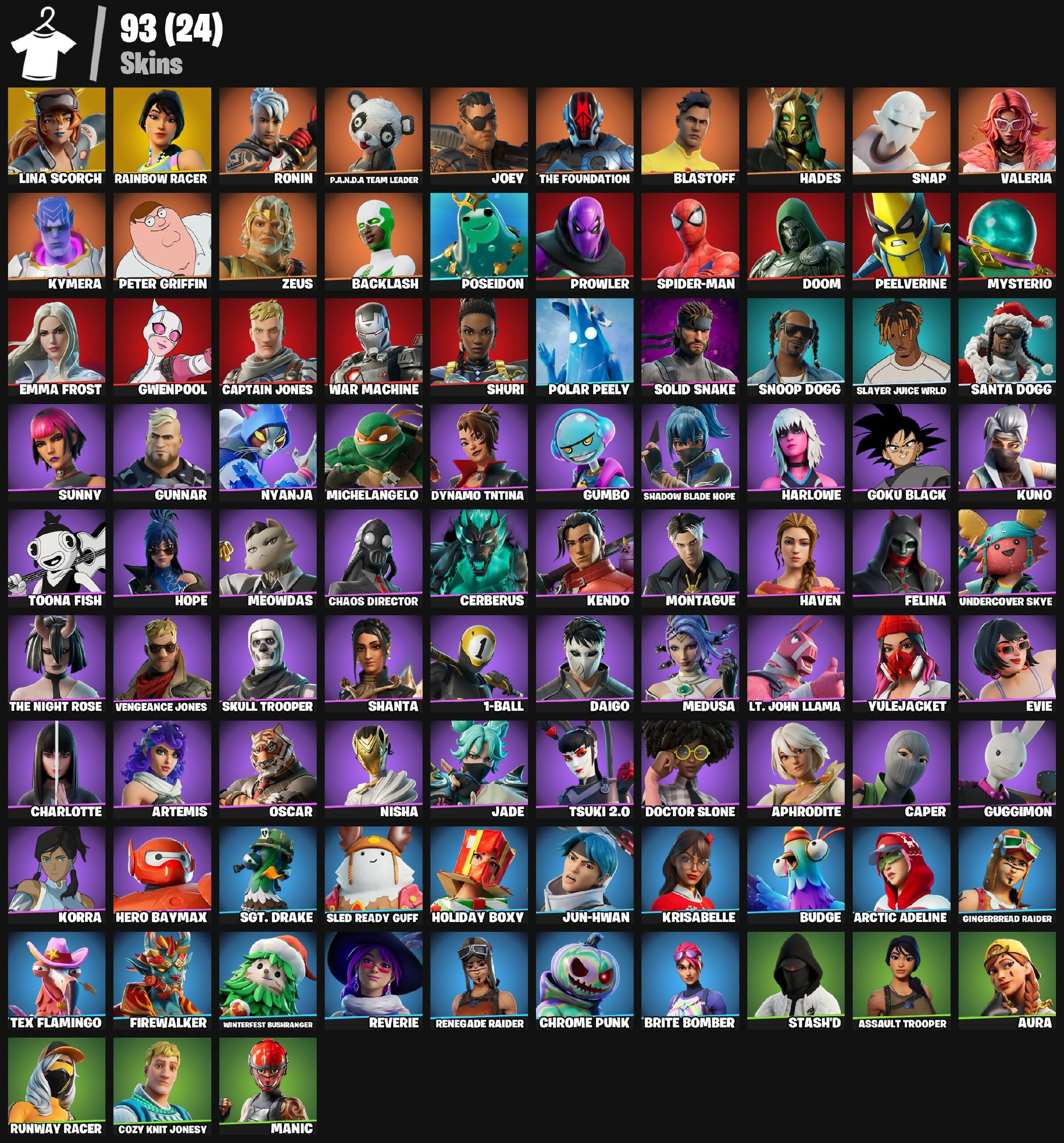 #IS5029 [PC/XBOX] 93 skins | Renegade Raider | Lina Scorch | Rainbow Racer | Ronin | P.A.N.D.A Team Leader | 50 VB
