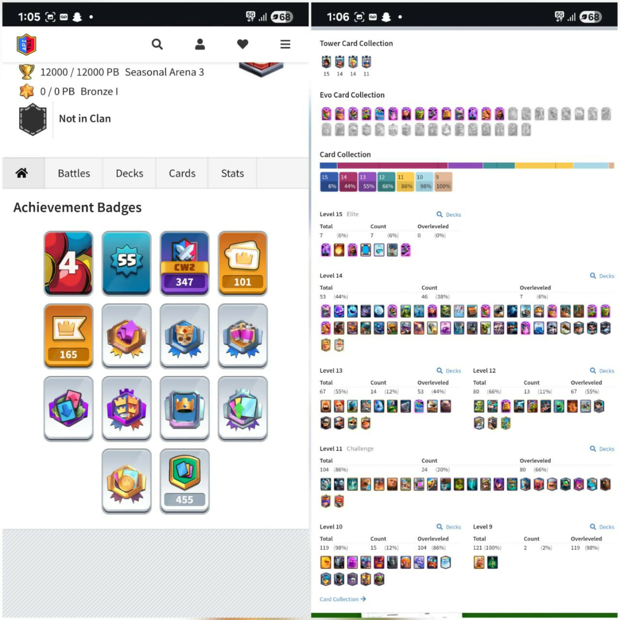 π Level 55 + π KT 15 | π 130 Emotes | π₯ 12,000 Trophies | β 53 Max Cards {7 Elites} + β¨ 14 Evos | β Name Changable | πΌ 80 Banners + π 85 Frames | β‘ Instant Delivery