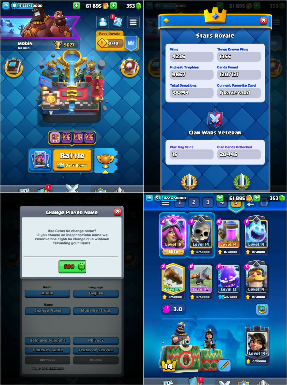 [ Lunar Pig Emote (Rare) ] ? Level 51 + ? KT 14 | ? 60 Emotes | ? 9600+ Trophies | β 23 Max Cards {2 Elites} + β¨ 5 Evos | ? Android & iOS | β‘ Instant Delivery