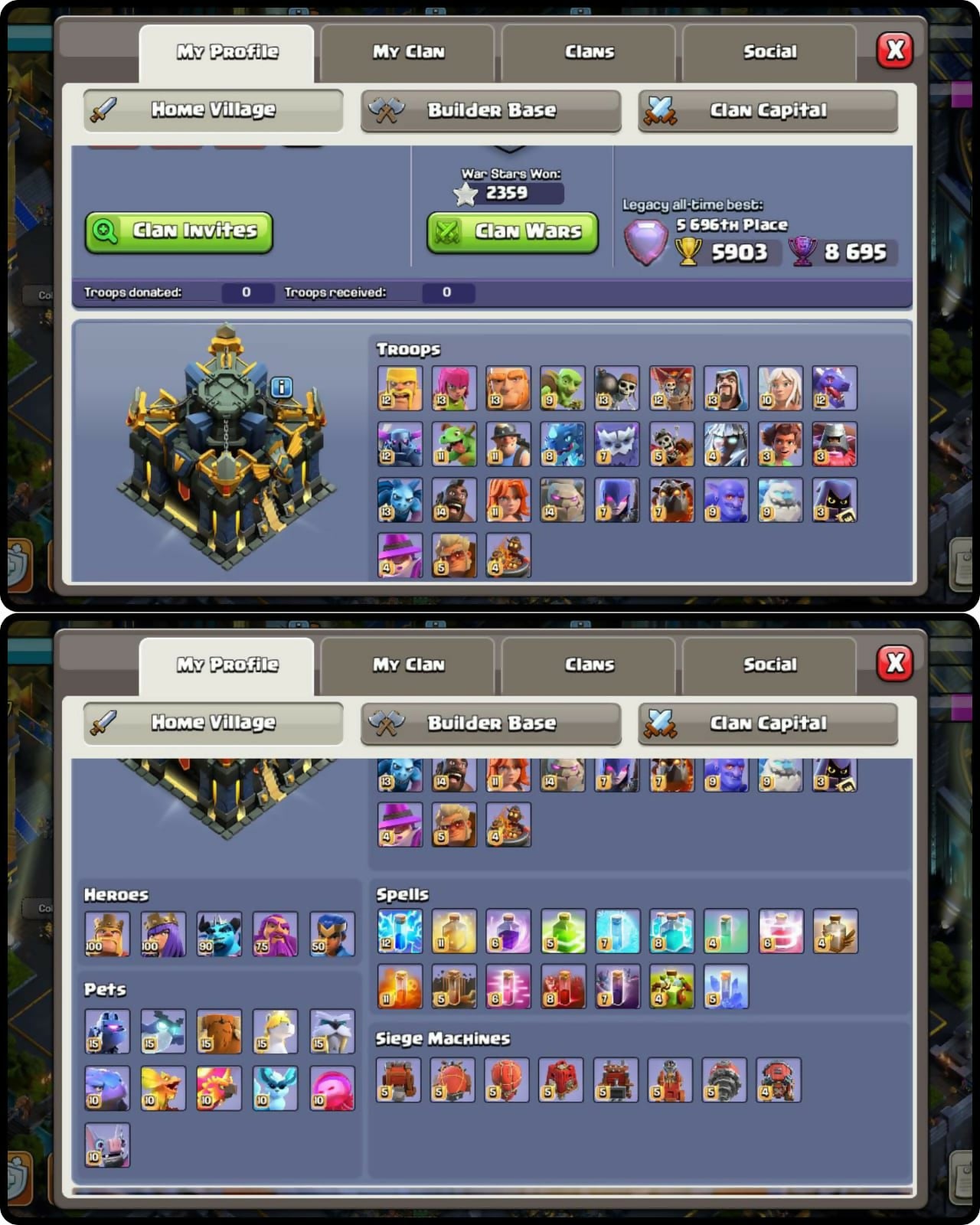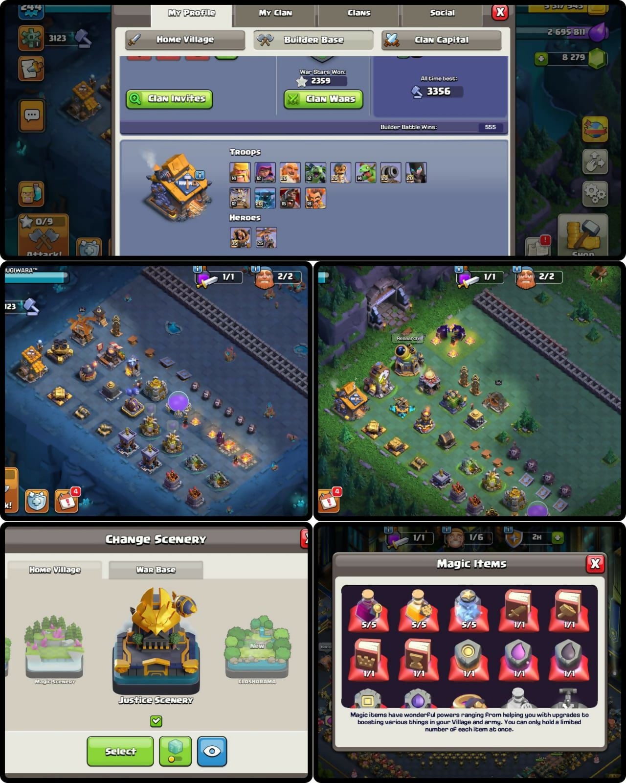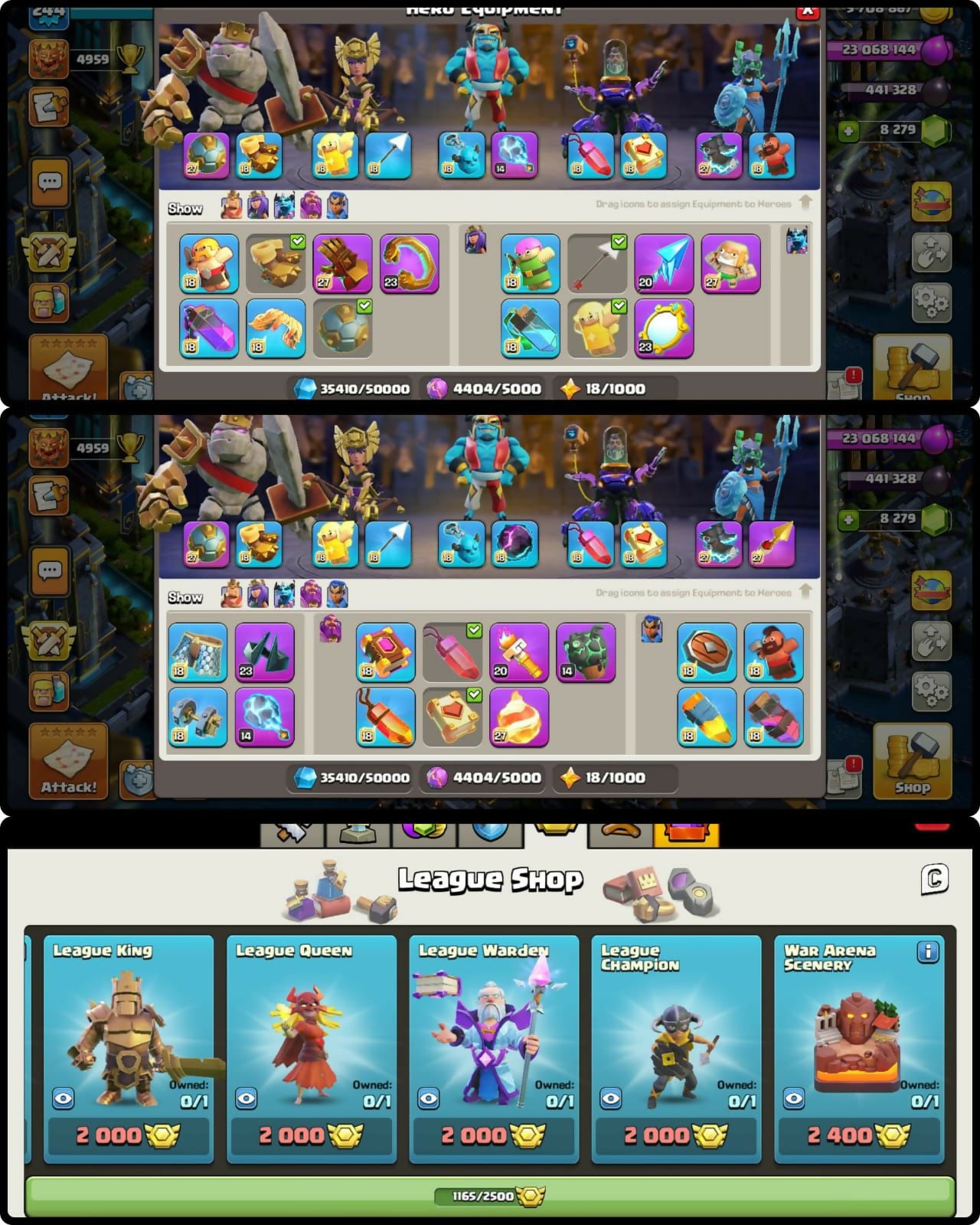 MAXED 6 EPIC EQUIPMENT SUPERCHARGED FULL MAX TH17 MAX XP 244 || ORGANISED DECORATIONS || JUSTICE SCENERY 12 SKINS || 1165 CWL MEDALS, 8000 GEMS, ITEMS || GAUNTLET 27, ARROW 20, FIREBALL 27, ROCKET SPEAR 27, SPIKY BALL 27, MAGIC MIRROR 23, LAVALOON PUPPET