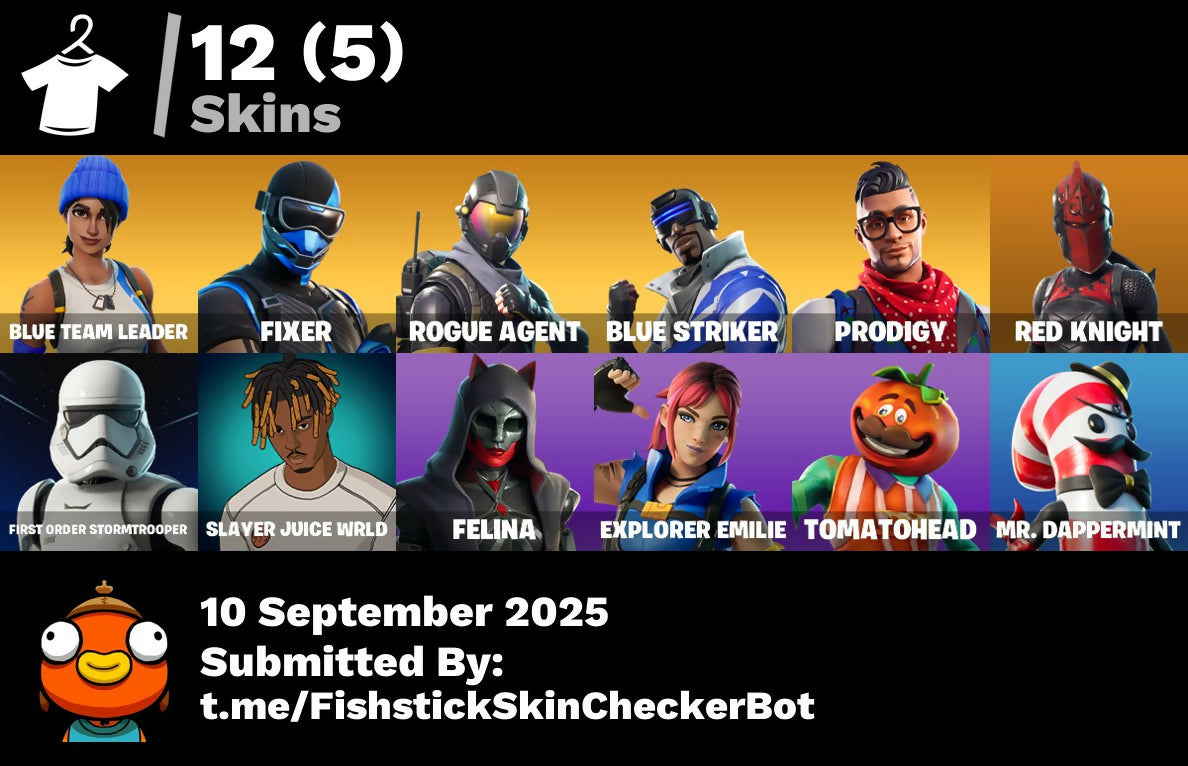 [PC] 12 skins | Blue Team Leader | Fixer | Rogue Agent | Blue Striker | Prodigy | Red Knight | First Order Stormtrooper | Slayer Juice WRLD | Felina | 500 VB