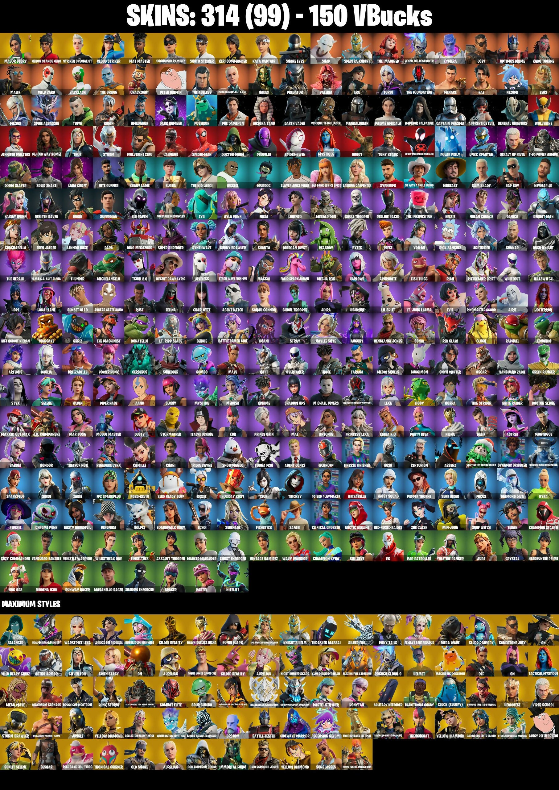 (PC/PSN) 150 VB) 314 SKINS / Major Glory | Heron Stance Hero | Striker Specialist | Cloud Striker | Mat Master | Unchained Ramirez /