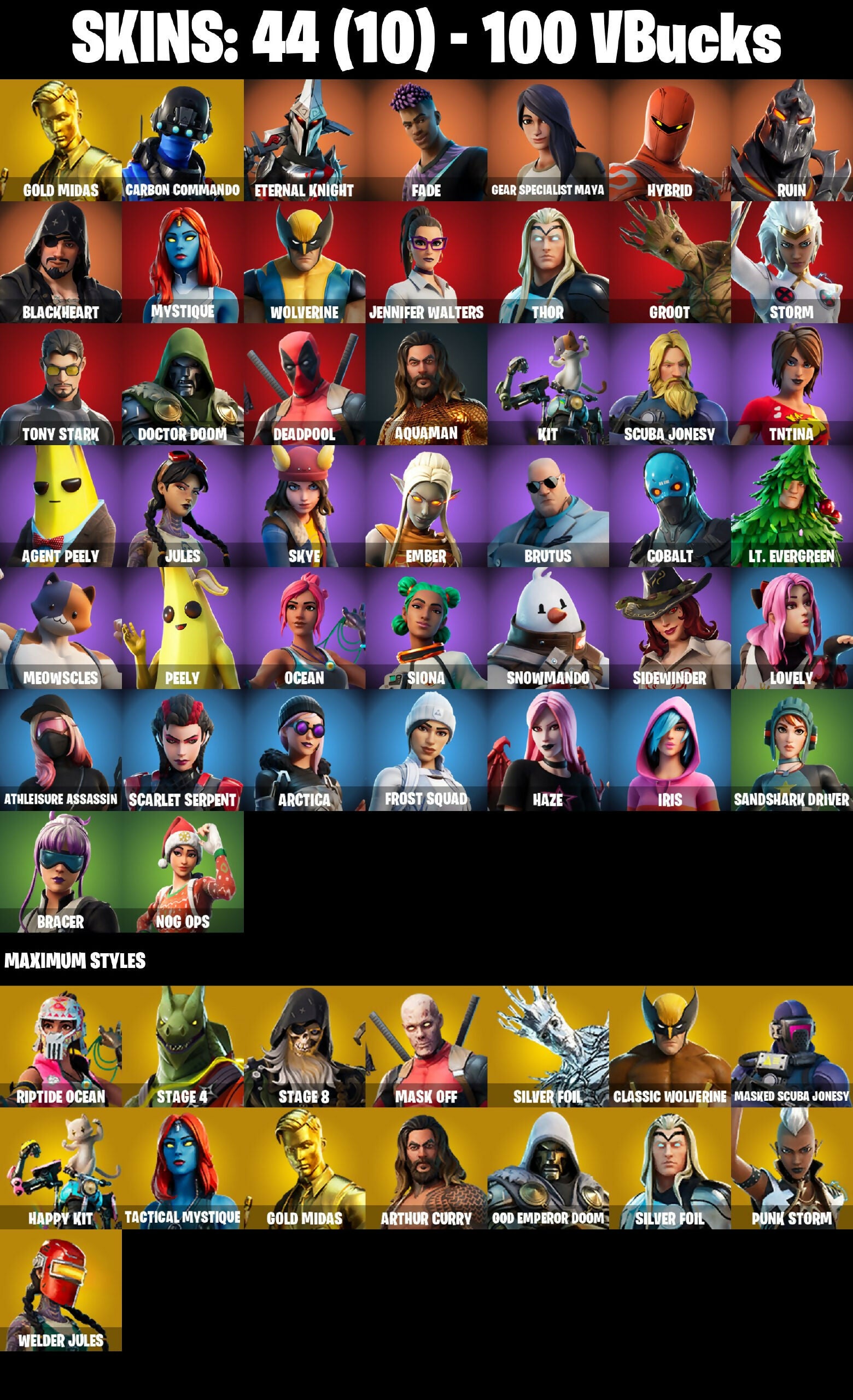 (PC/PSN/XBOX) 100 VB) 44 skins | Gold Midas | Carbon Commando | Eternal Knight | Fade | Gear Specialist Maya | Hybrid | Ruin | Blackheart