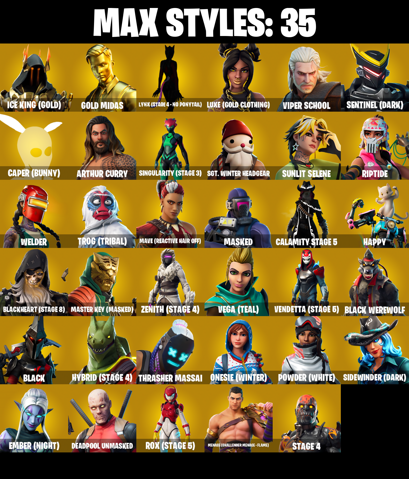 PC/PSN/XBOX |103 skins | Galaxy | Glow | Deadpool | Gold Midas | Galaxia | Galactic Disc | Stellar Axe | Rage | Discovery | Dire | #B678